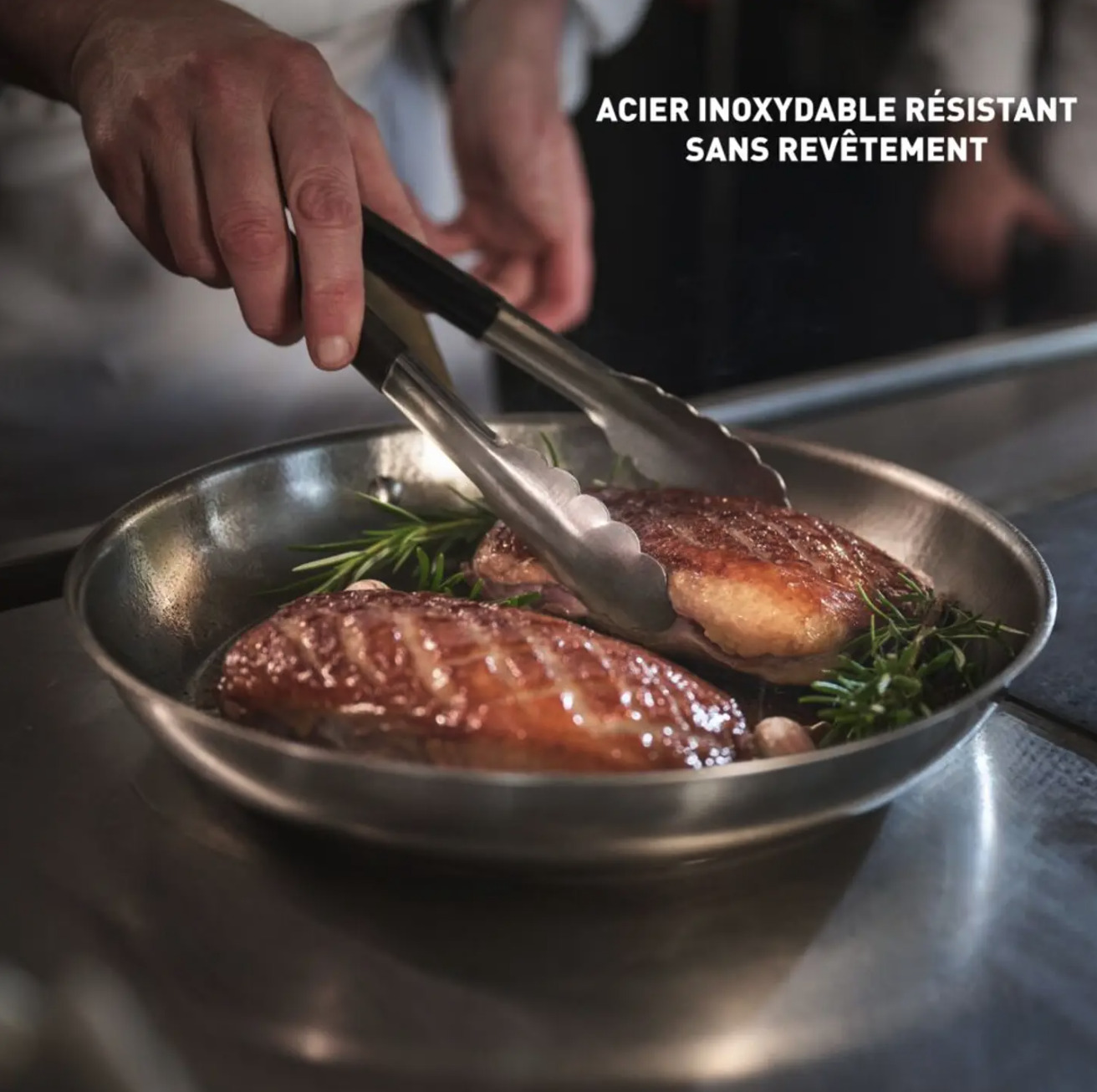 Offrez-vous l’excellence culinaire avec la poêle 24 cm INOX P.BOCUSE, fruit de l’alliance entre Tefal et la Maison Bocuse. Une pièce d’exception qui transforme chaque cuisson en un moment de maîtrise et de plaisir.