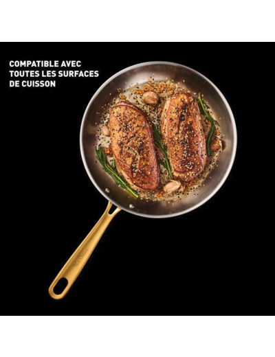 Poêle de 28 cm en acier inoxydable avec poignée fixe en acier inoxydable. Collection Paul Bocuse signée Tefal, conçue pour une performance professionnelle et un design élégant. Ecotaxe incluse : 0.