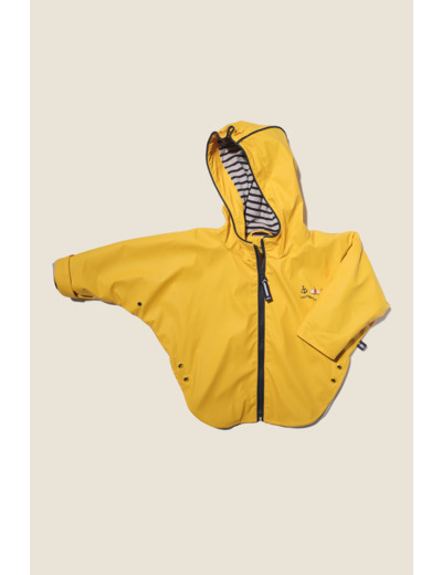 Fabriqué en tissu imperméable et doublé pour plus de confort, le ciré cape Kaio est équipé d’une capuche intégrée et d’un système de fermeture par boutons-pression. Il se nettoie aisément en machine, assurant une durabilité optimale.