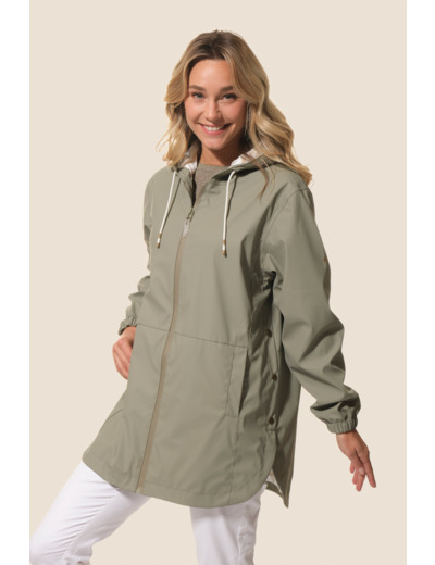 Ce ciré se distingue par sa coupe ajustée et sa capuche protectrice, idéale pour les journées pluvieuses. Sa matière légère et résistante assure une protection optimale contre l’humidité tout en restant confortable à porter. Son design épuré et ses finitions soignées font de ce vêtement un incontournable du dressing féminin, parfait pour un look urbain et dynamique.