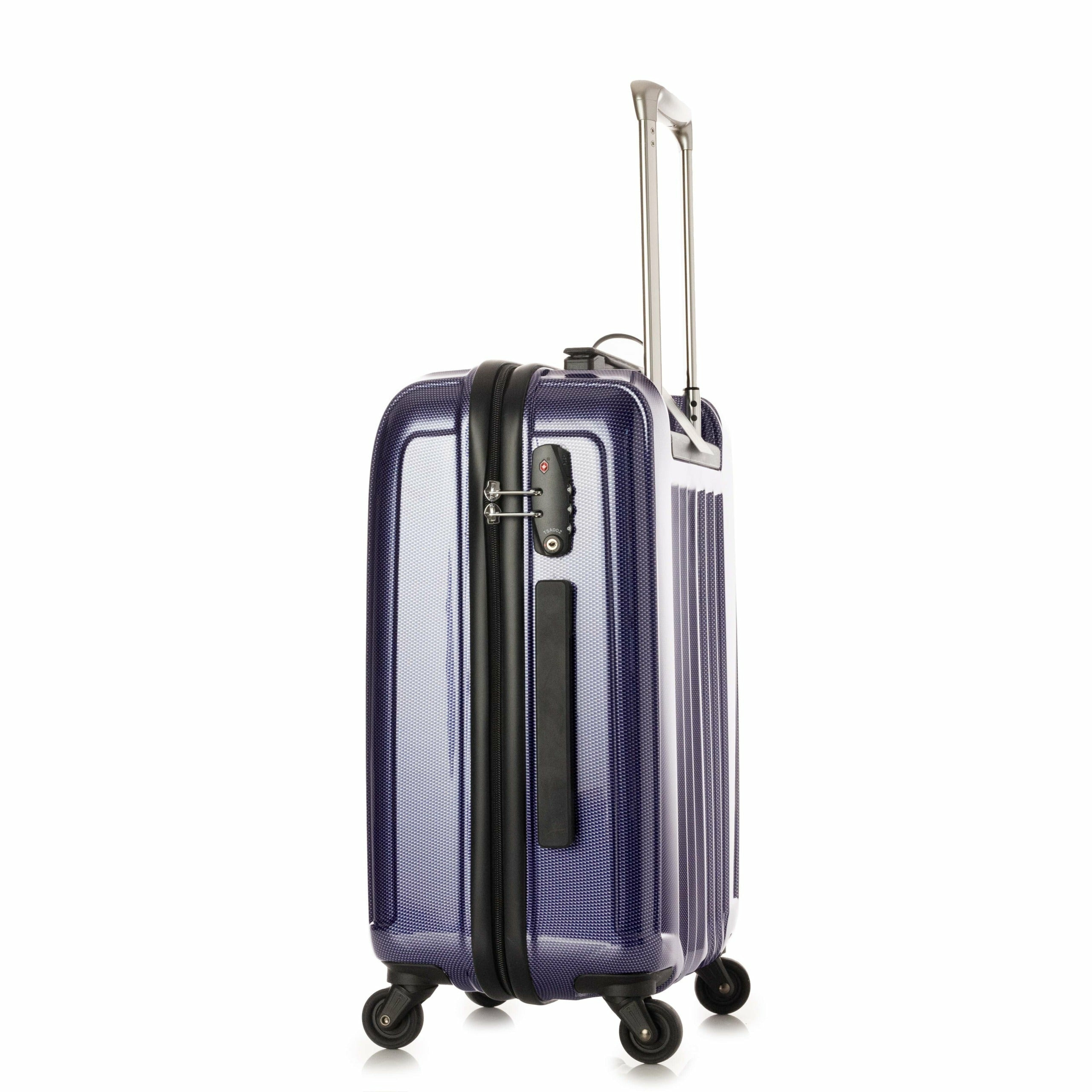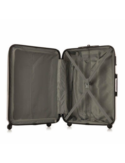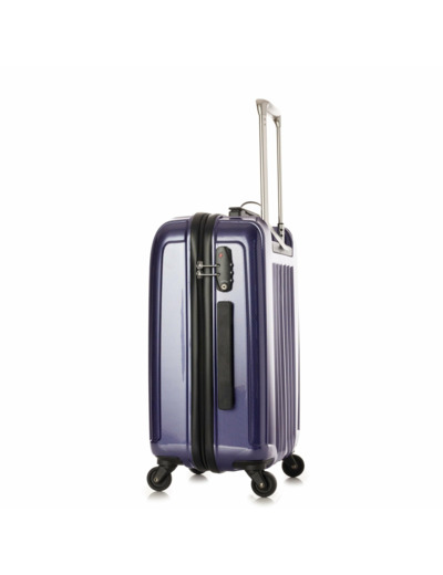 La ligne de valise SUN de la Maison LA BAGAGERIE associe élégance résistance et légèreté grâce à la combinaison de 2 matériaux: Polycarbonate et ABS. Son petit gabarit en fait un bagage de choix pour prendre l'avion. Maniables et pratiques, c'est une alliée de choix pour les départs en week-ends ou une  escapade de moins d'une semaine. La valise SUN possède 2 compartiments pourvus d'une doublure textile et d'un plateau séparateur souple zippé. Elle permet ainsi un chargement simple et rapidement des tenues de rechange, des affaires de toilette. Elle se faufile partout avec ses 4 doubles roues multidirectionnelles et sa poignée télescopique. Sa poignée haute facilite sa prise en main pour la déposer  dans le coffre d'un véhicule. Pour une sécurisation optimale, on peut compter sur sa serrure TSA à code et sa solide fermeture zippée._x000D_