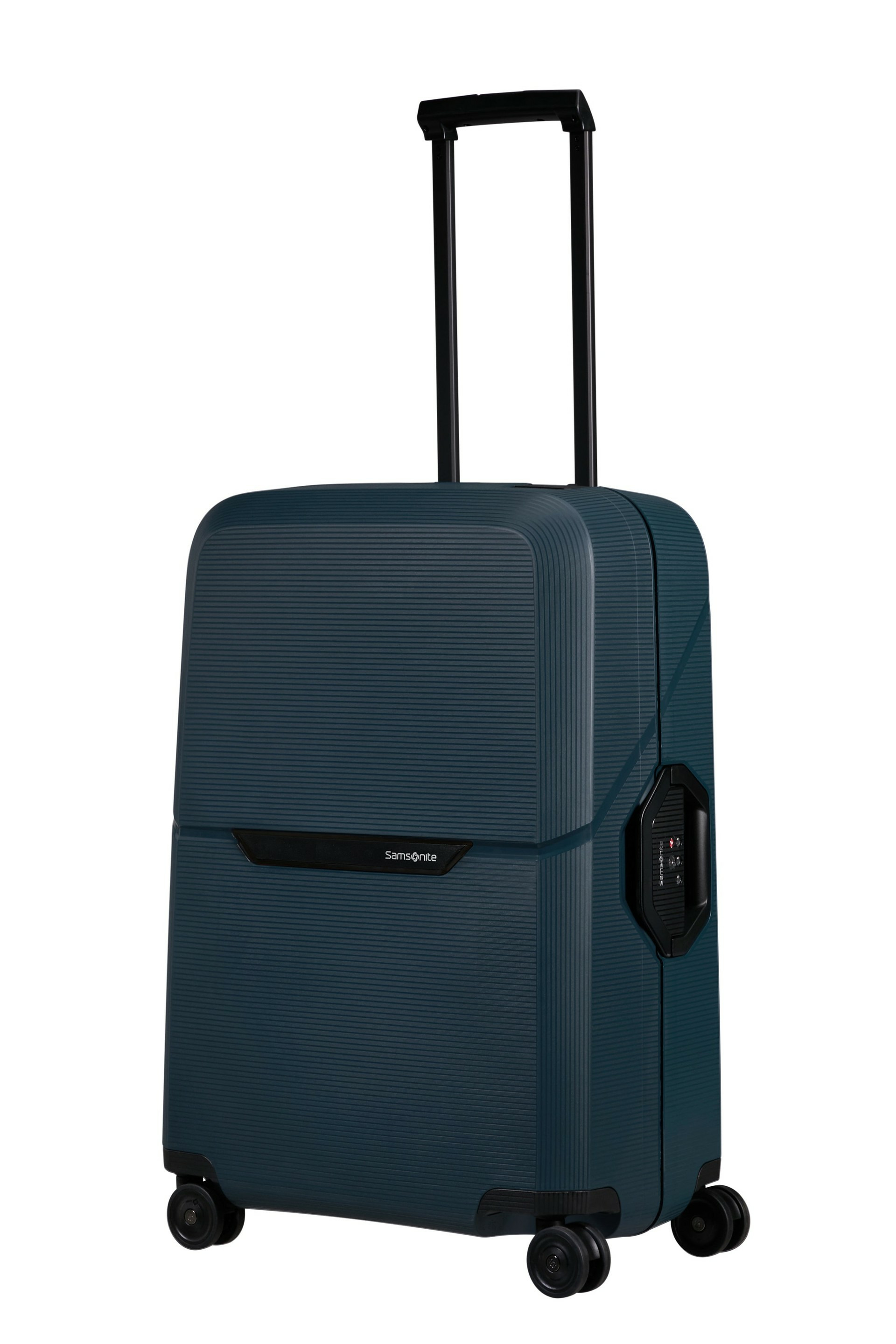La valise Samsonite Magnum Eco est montée sur 4 roues sur 4 roues doubles stables et silencieuses. Elle est en sus équipée d'une poignée télescopique double canne à position réglable pour la tracter aussi aisément sur 2 ou 4 roues. Dessus et sur le côté, 2 poignées rigides permettent de la tenir bien en main pour franchir un obstacle. Elle est pourvue d'un système de fermeture à attache à cadre 3 points sécurisés par une serrure TSA à code. A l'arrière, un porte-adresse personnalisable permet de laisser accessible les coordonnées de contact de son propriétaire.