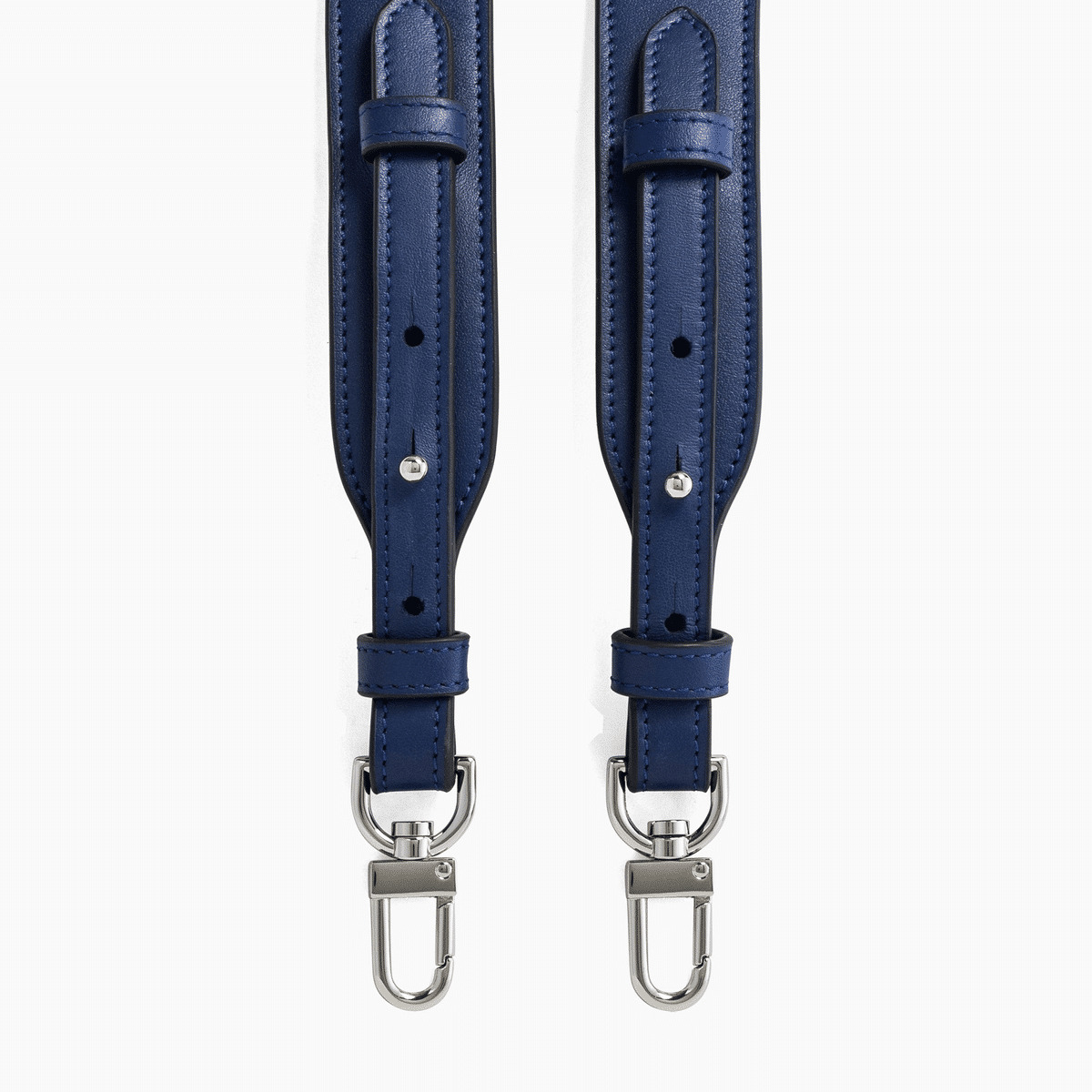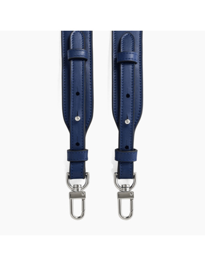 Cette bandoulière dispose de tranches contrastées et s'ajuste grâce à des boutons de col finition argenté. Elle offre un double porté supplémentaire : en croisé ou à l'épaule. Fabriqué en France.Bandoulière amovibleAccessoires métalliques finition argentLargeur : 100 cm