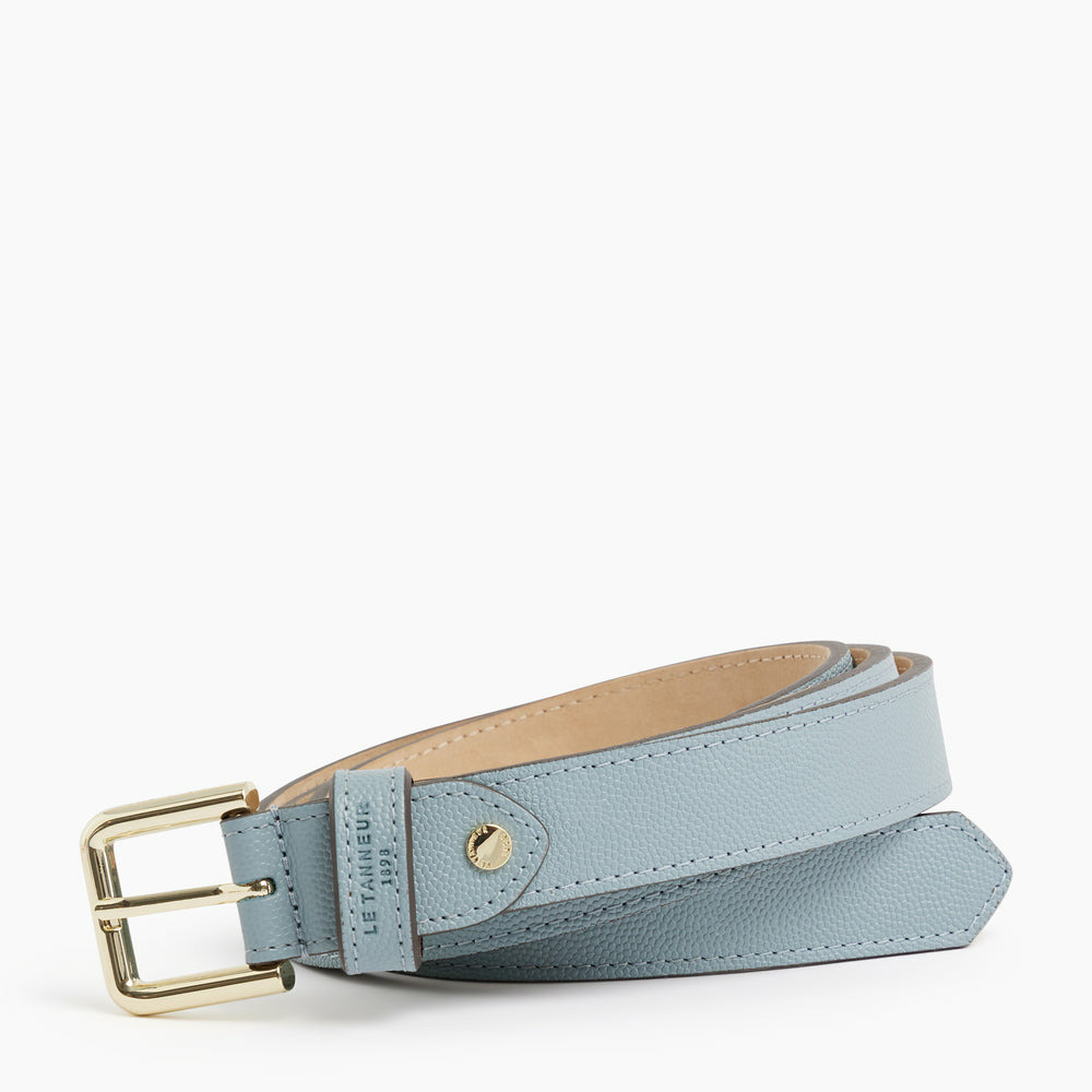 Ceinture à boucle carrée gravée et passant embossé Le Tanneur ton sur ton.Cuir de vachette grain T. Intérieur nubuck.Marquage embossé ton sur ton et gravé sur boucle finition doré clair.Largeur : 120 cm x Hauteur : 2 cm