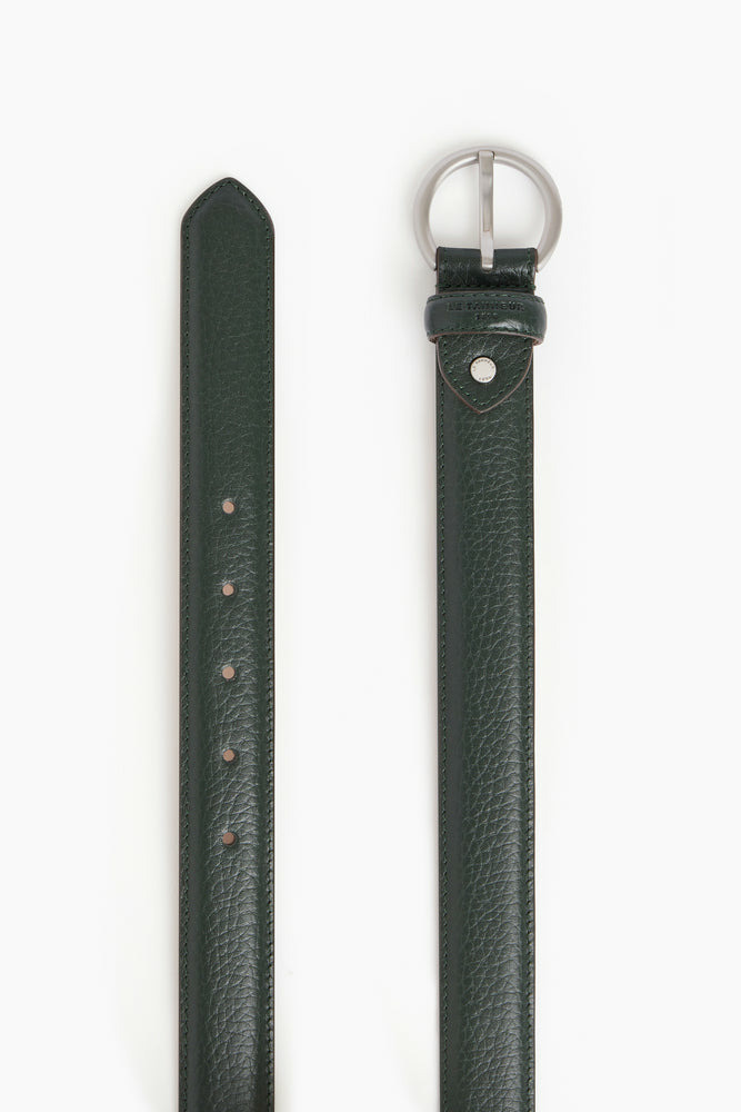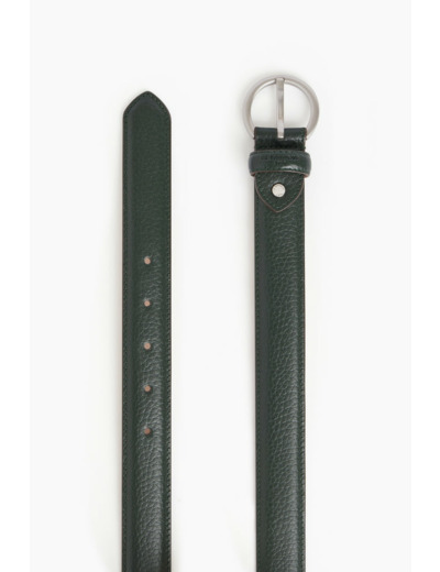 Fabriquée en cuir grainé de haute qualité, cette ceinture mesure environ 3 cm de largeur. La boucle ronde en métal finition argentée garantit solidité et élégance. Disponible en plusieurs tailles pour un ajustement parfait.
