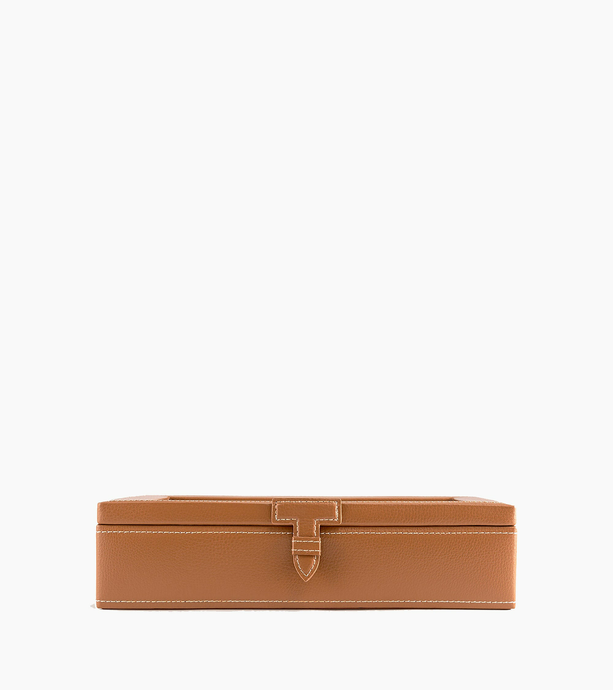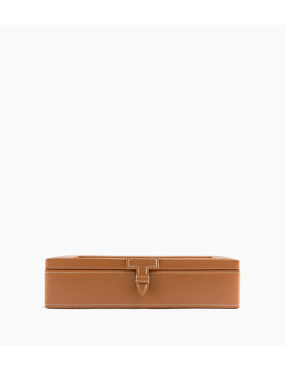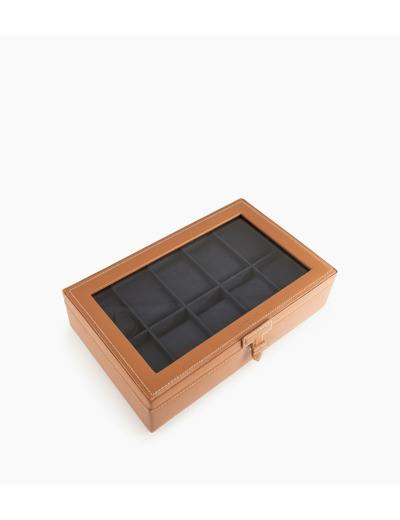 Coffret 10 montres en cuir de vachette et doublure velours. Marquage ton sur ton et fermoir en T signature.Refente de cuir de vachette. Intérieur velours.Hauteur : 7 cmProfondeur : 19 cm