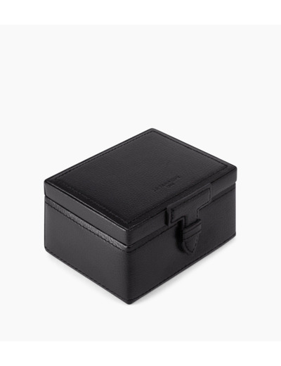 Coffret boutons de manchettes en cuir de vachette et doublure velours. Marquage ton sur ton et fermoir en T signature.Refente de cuir de vachette. Intérieur velours.Largeur : 13 cm x Hauteur : 7 cm x Profondeur : 10 cm