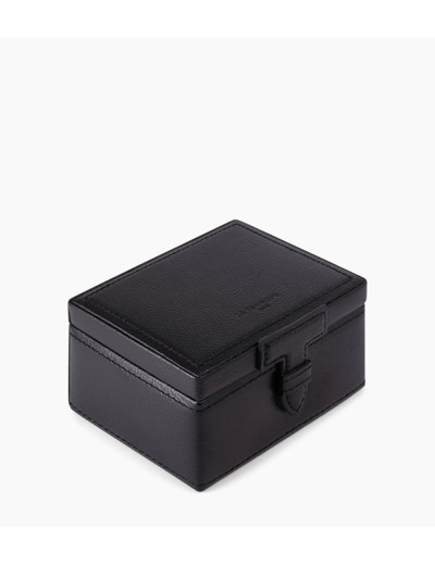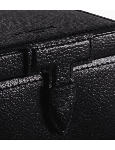 Coffret boutons de manchettes avec compartiment amovible et doublure velours. Marquage Le Tanneur ton sur ton et fermoir en T signature.Cuir recyclé de vachette pleine fleur. Intérieur velours textile.Largeur : 13 cm x Hauteur : 7 cm x Profondeur : 10 cm