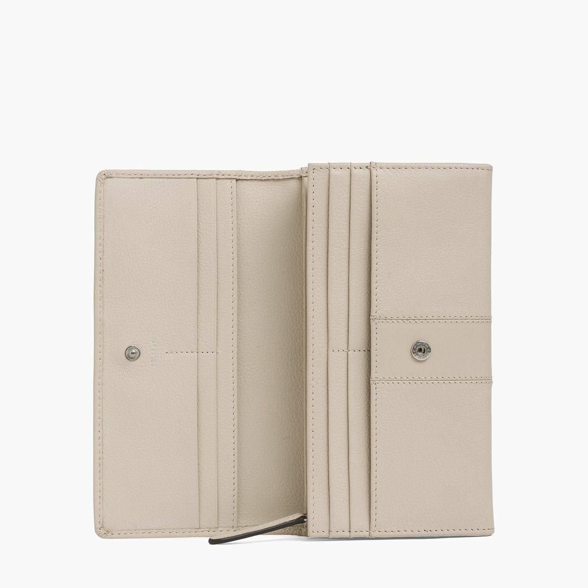 Dimensions compactes, cuir grainé pleine fleur, fermeture par rabat avec bouton pression, compartiments multiples pour cartes, billets et monnaie. Fabrication française garantissant qualité et durabilité.