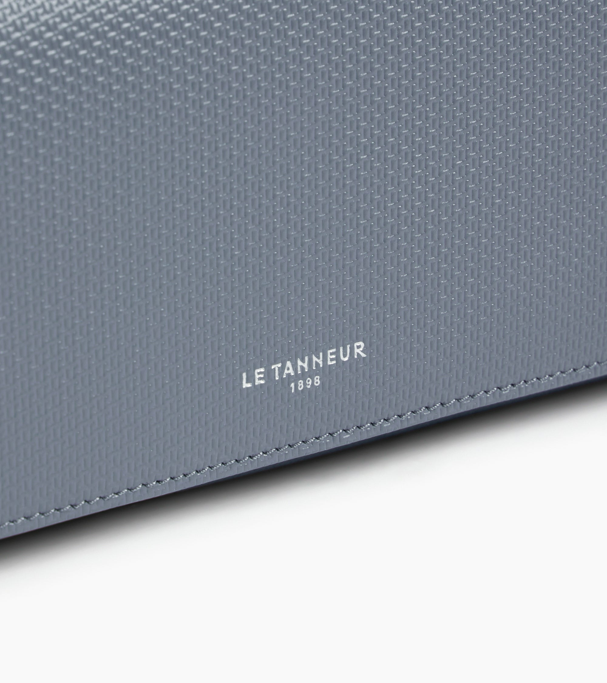 Compagnon à rabat avec marquage Le Tanneur sur film doré clair. Sécurité anti-RFID.Cuir de vachette grain t pleine fleur. Doublure polyester Le Bleu.3 poches plates, 1 soufflet, 1 poche zippée monnaie et 10 compartiments cartes. 1 poche plate arrièreAccessoires métalliques finition argent.Largeur : 19 cm x Hauteur : 11 cm x Profondeur : 1 cm