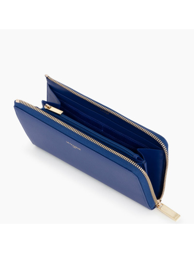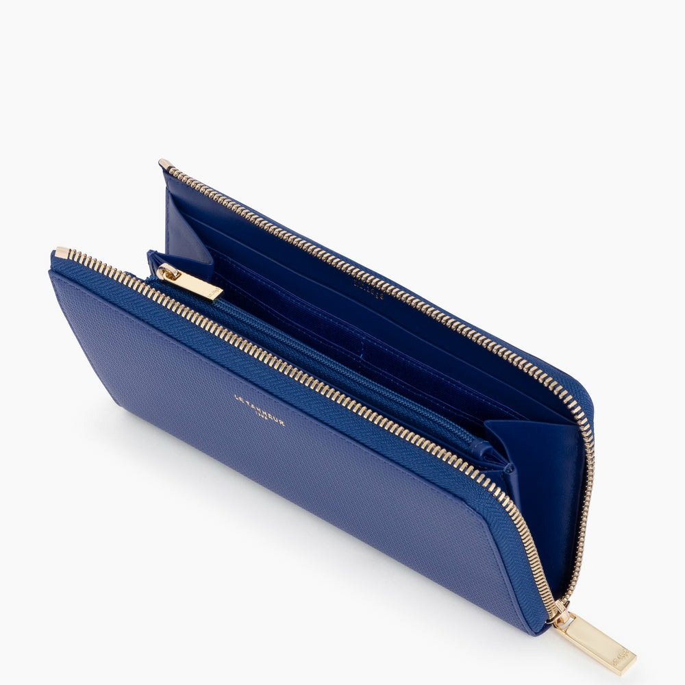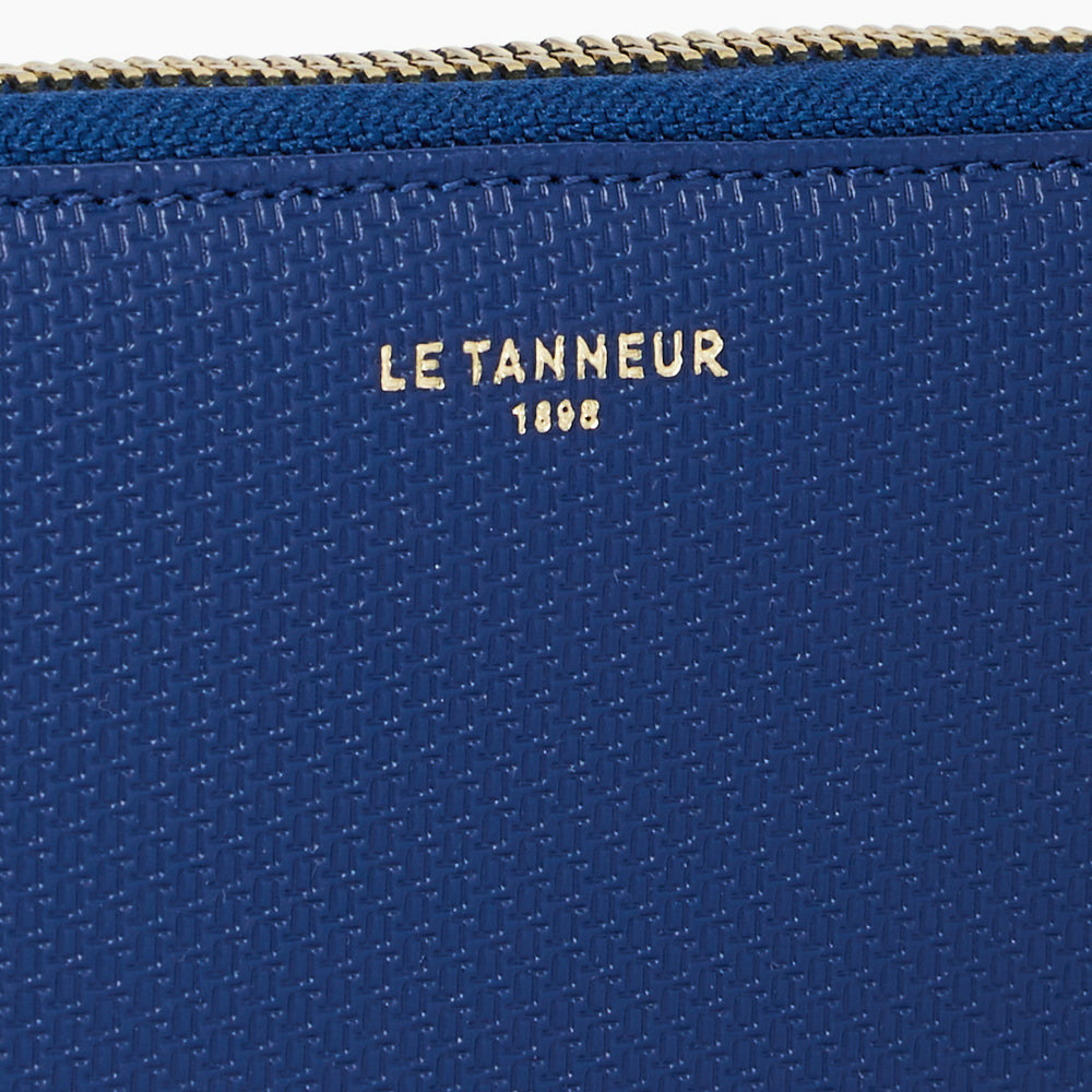 Compagnon zippé avec marquage Le Tanneur sur film doré clair. Sécurité anti-RFID.Cuir de vachette monogramme. Doublure textile Le Bleu.2 poches plates, 2 soufflets, 1 poche zippée monnaie et 12 compartiments cartes.Accessoires métalliques finition doré clair.Largeur : 19 cm x Hauteur : 10 cm