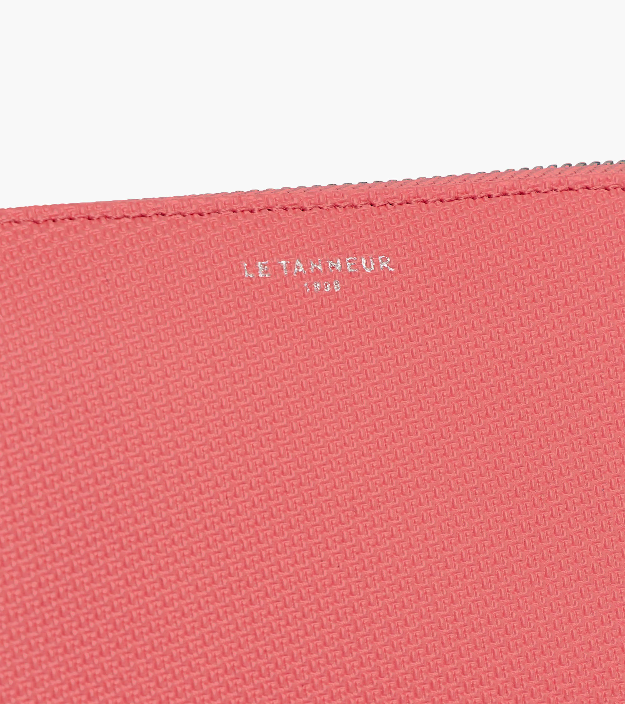 Compagnon zippé avec marquage Le Tanneur sur film doré clair. Sécurité anti-RFID.Cuir de vachette grain t pleine fleur. Doublure textile Le Bleu.3 poches plates, 2 soufflets, 1 poche zippée monnaie et 12 compartiments cartes.Accessoires métalliques finition argent.Largeur : 19.5 cm x Hauteur : 10 cm x Profondeur : 1 cm