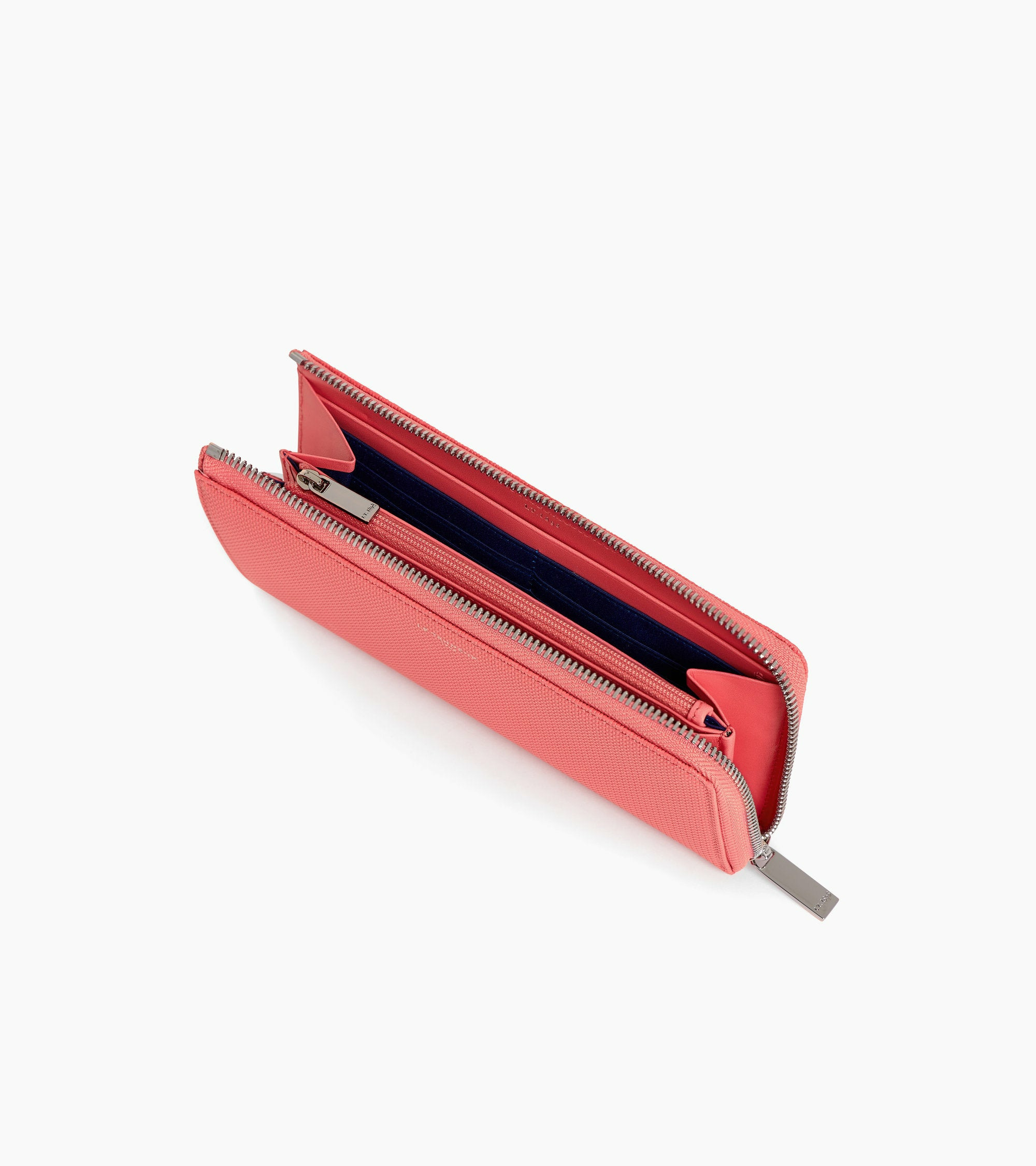 Fabriqué en cuir pleine fleur, ce compagnon mesure environ 19 cm de long sur 10 cm de haut. Il dispose d’un compartiment monnaie zippé, de plusieurs emplacements cartes et d’un espace billets. La fermeture zippée métallique assure une utilisation durable.