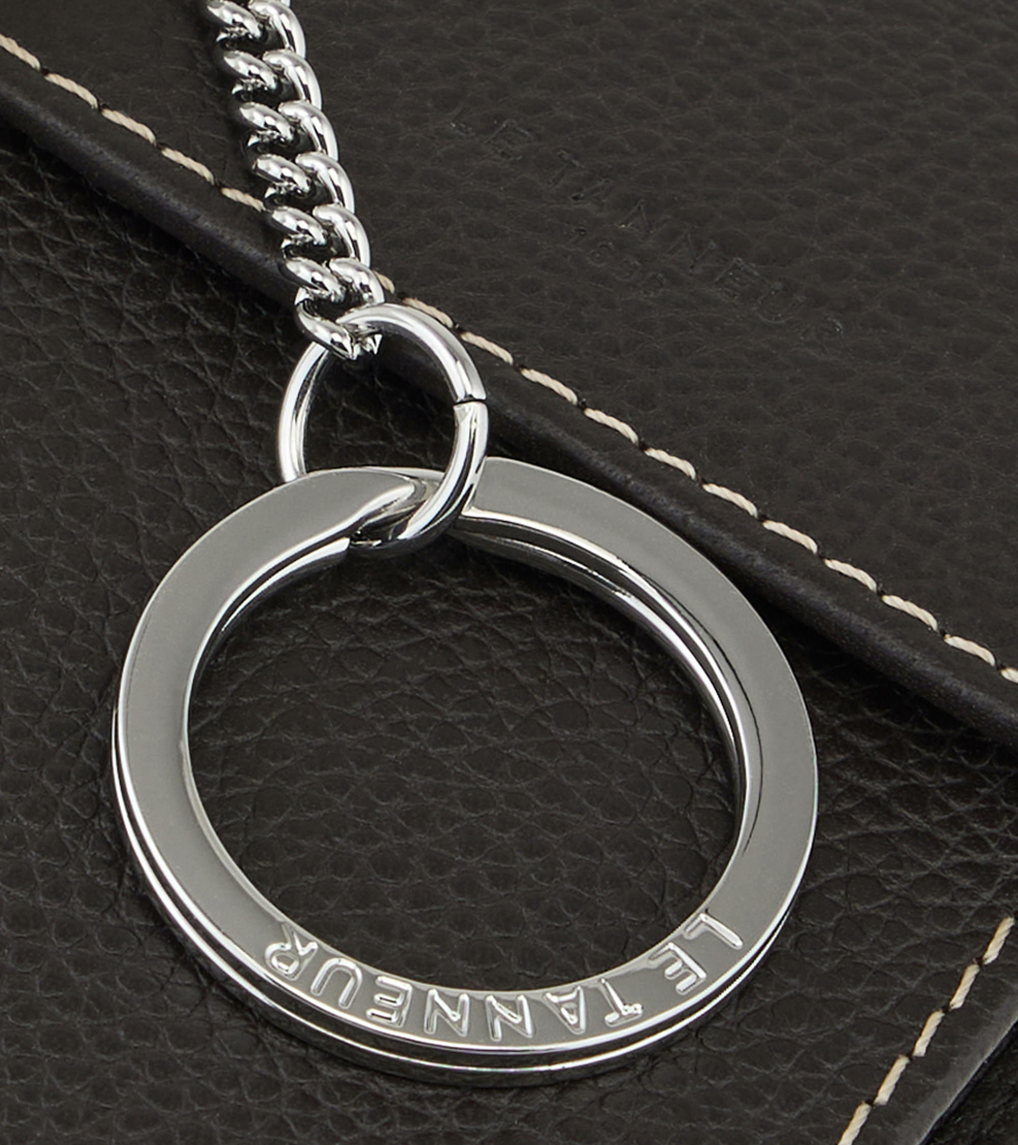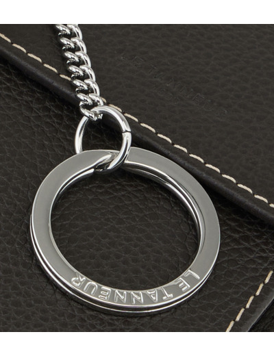 Étui clés à rabat avec piqures contrastées et marquage Le Tanneur ton sur ton.Cuir de vachette pleine fleur grainé. Doublure textile1 mousqueton clés chaînette et une poche plate arrière.Accessoires métalliques finition argent.Largeur : 7 cm x Hauteur : 13 cm x Profondeur : 1 cm