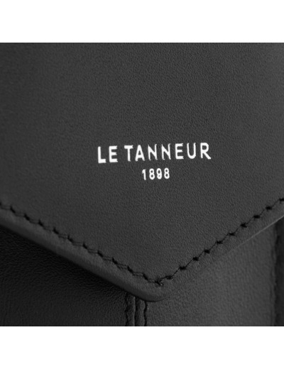 Dimensions compactes, cuir lisse pleine fleur, fermeture par rabat à pression, plusieurs anneaux pour clés, finition soignée, marque Le Tanneur embossée.