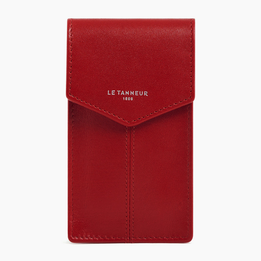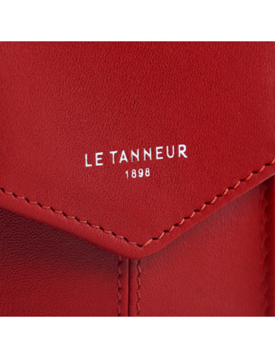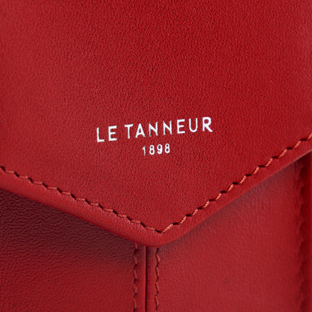 Dimensions compactes, cuir lisse pleine fleur, fermeture par rabat à pression, plusieurs anneaux pour clés, finition soignée, marque Le Tanneur embossée.