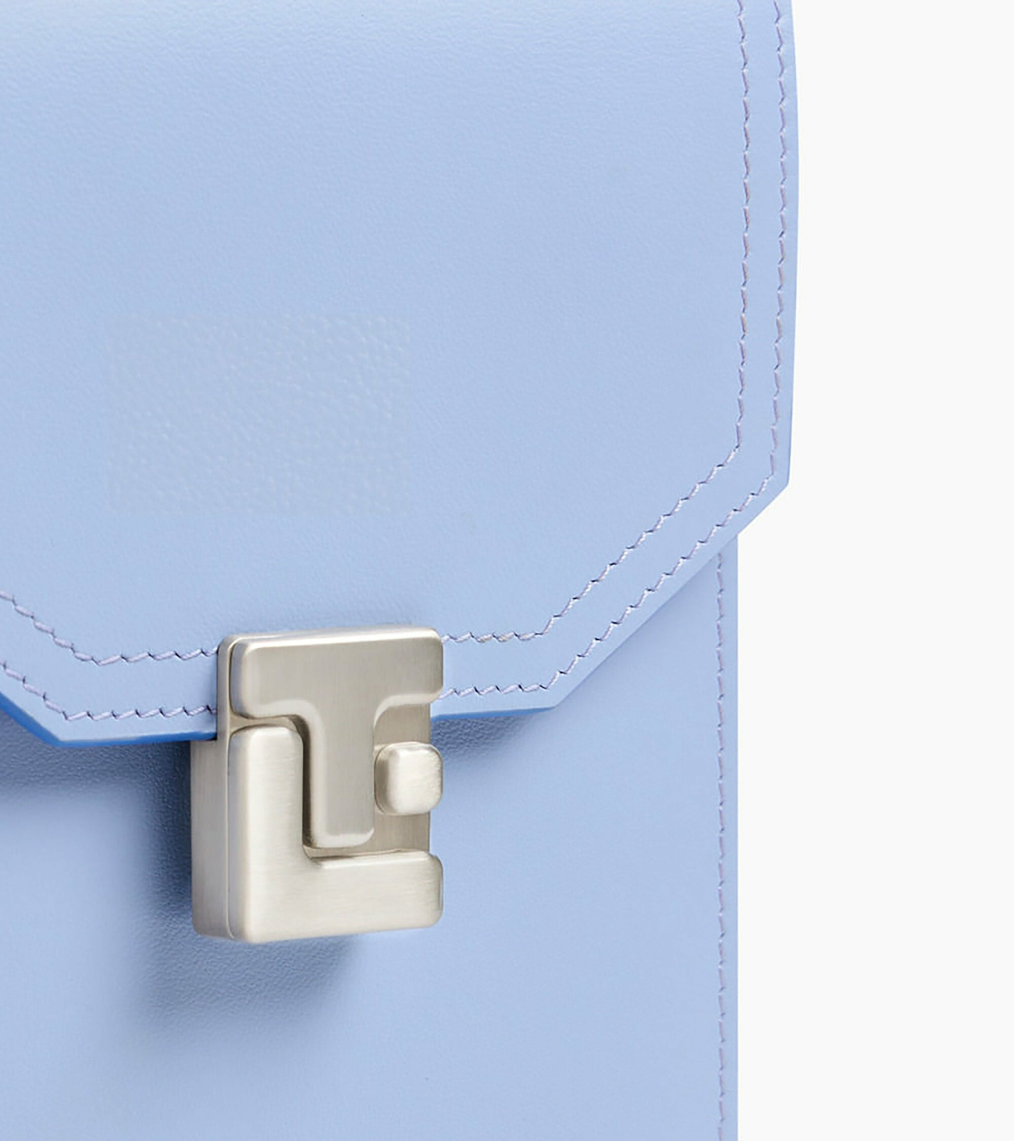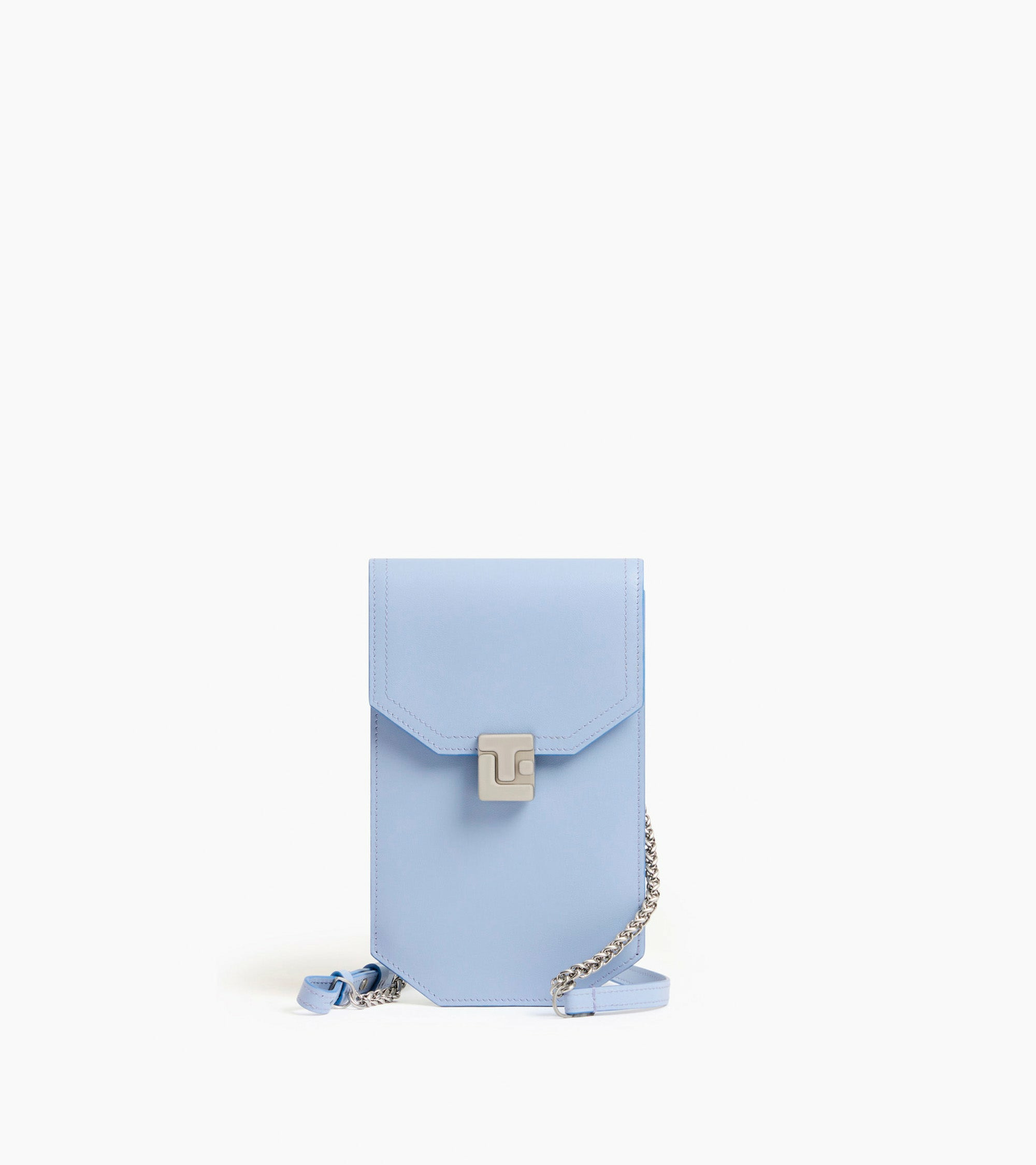 Étui téléphone tour de cou à rabat avec fermoir signature finition doré brossé. Dispose d'une protection RFID.Cuir de vachette pleine fleur lisse. Doublure textile jacquard noir.1 compartiment pour téléphone avec soufflet. 3 compartiments cartes et 1 poche plate arrière.Accessoires métalliques finition doré brossé.Largeur : 11 cm x Hauteur : 18 cm