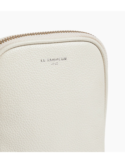 Étui téléphone zippé avec marquage Le Tanneur et zip finition argent. Porté épaule ou croisé grâce à sa bandoulière ajustable. Sécurité anti-RFID.Cuir de vachette pleine fleur grainé. Doublure textile Le Bleu.1 grand compartiment zippé, 3 compartiments cartes. Bandoulière ajustable et amovible.Accessoires métalliques finition argent.Largeur : 17.5 cm x Hauteur : 10 cm x Profondeur : 2 cm