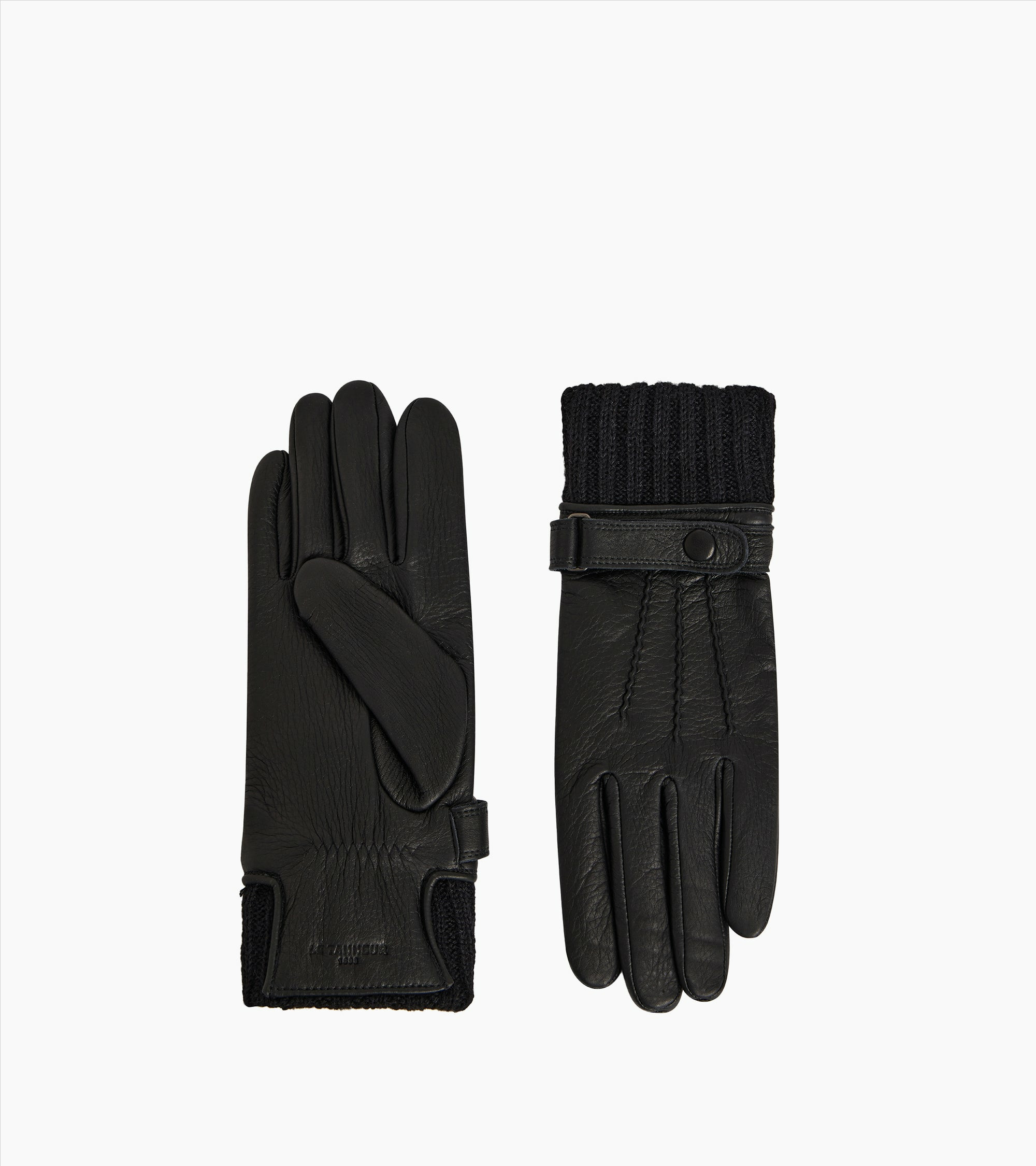 Gants en cuir haut de gamme avec doublure alpaga, boucle de serrage à pression et rivets gravés signature de la Maison.Cuir d’agneau pleine fleur. Doublure en alpaga.