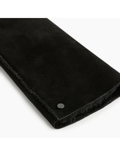 Gants femme en cuir d'agneau retourné « lainé » avec intérieur signature couleur Le Bleu et rivet gravé Le Tanneur.Peau retournée.