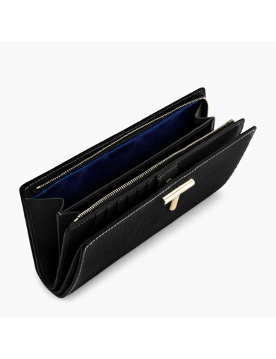 Dimensions : grand format adapté aux besoins modernes. Matière : cuir grainé pleine fleur. Fermeture zippée. Compartiments multiples dont porte-monnaie zippé et rangements cartes.