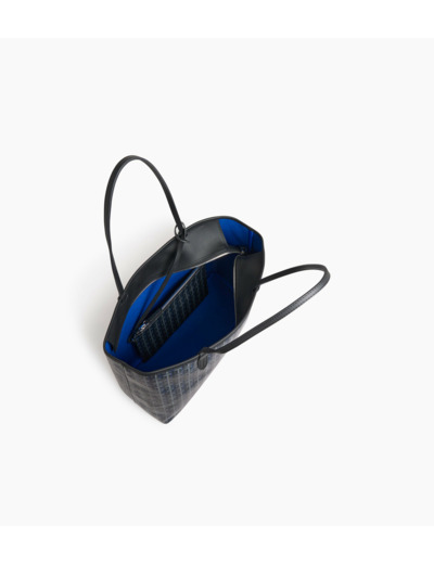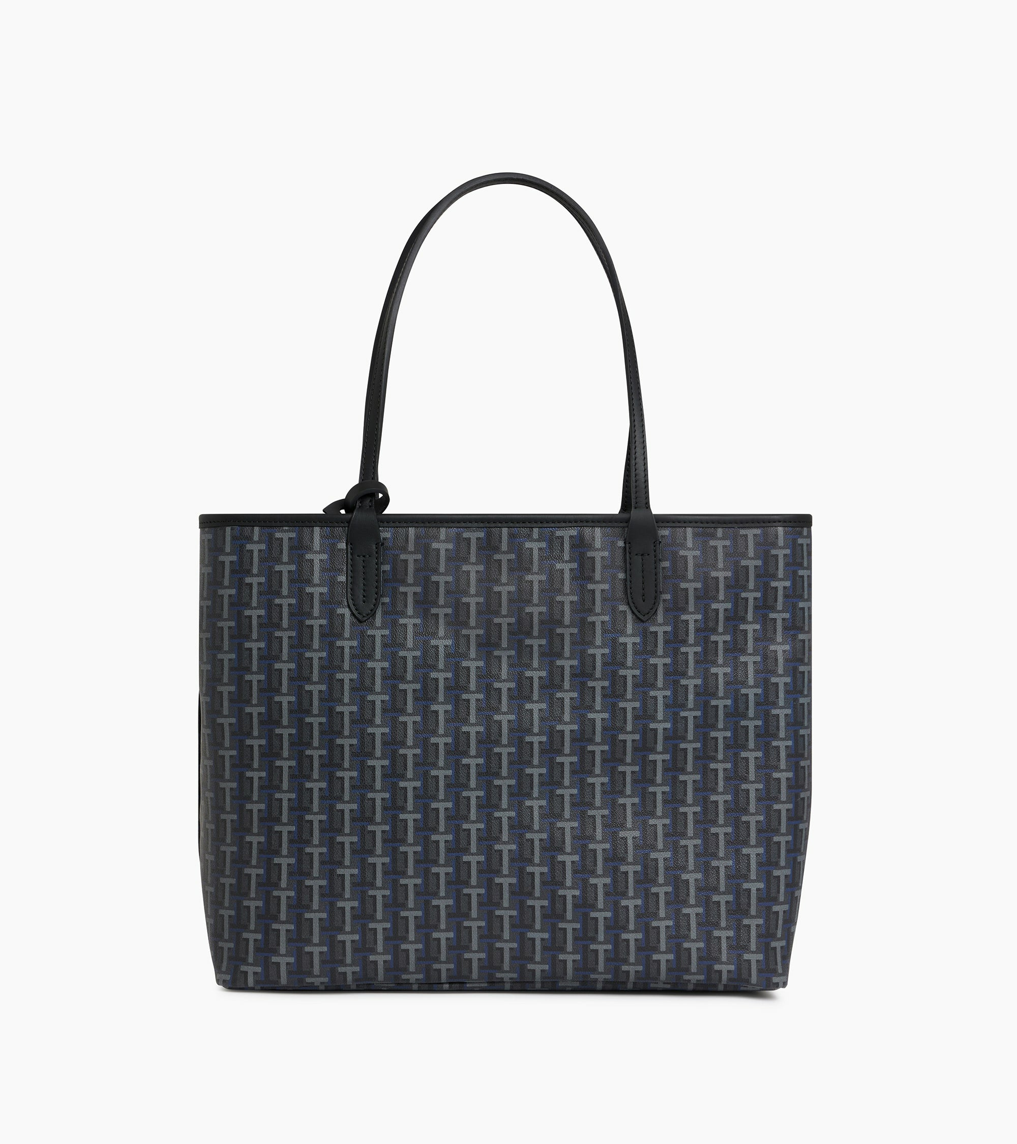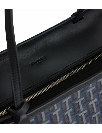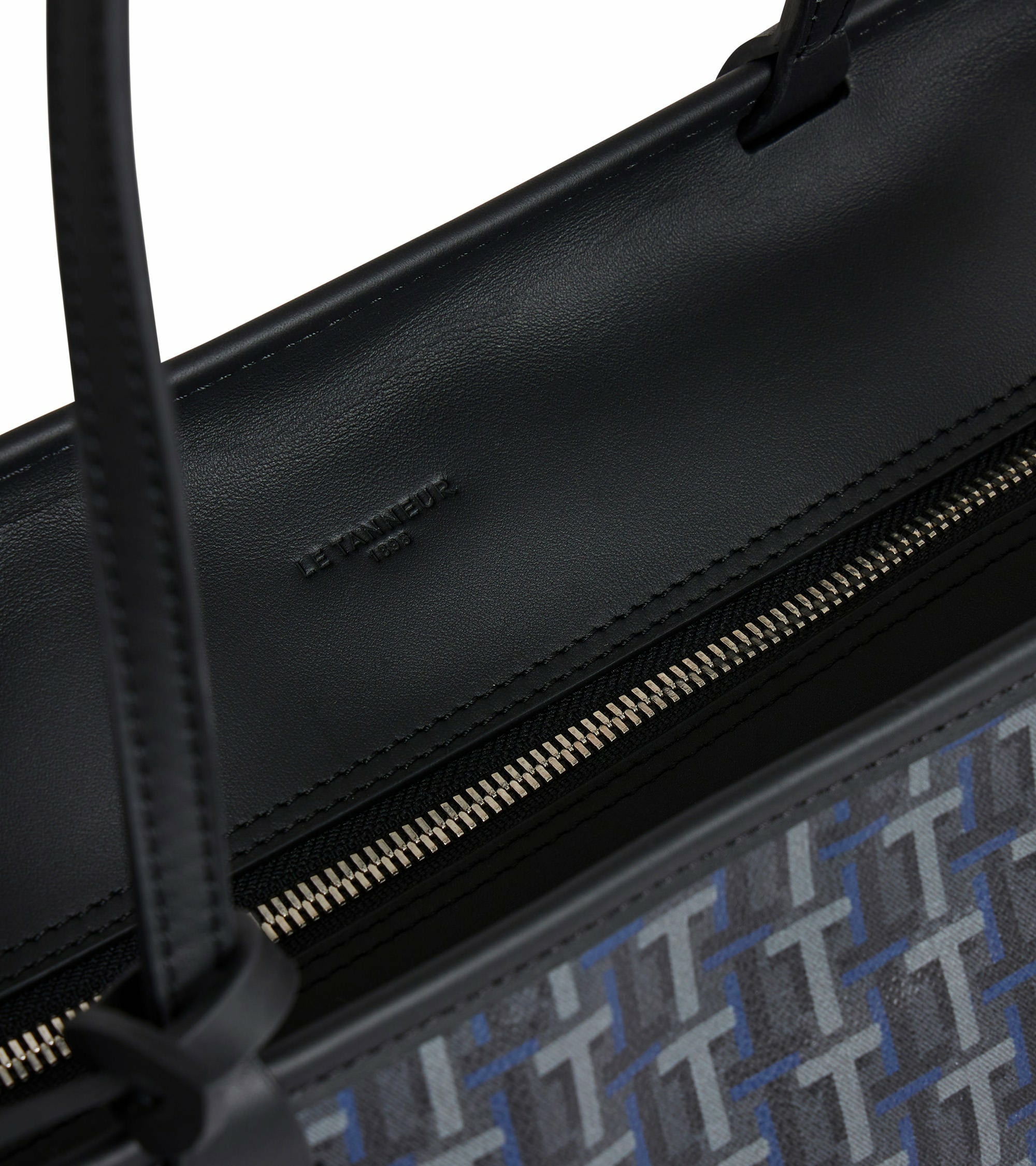 Cabas en cuir et toile de coton enduite ornée d’un motif signature T. Ce grand modèle comporte des poignées patte ogive, piquées elles aussi en T. Se porte à l’épaule. Peut contenir un ordinateur 16".Toile de coton enduite garnie cuir de vachette pleine fleur. Doublure textile Le Bleu.1 pochette zippée amovible.Accessoires métalliques finition argent.Largeur : 35 cm x Hauteur : 29 cm x Profondeur : 14 cm