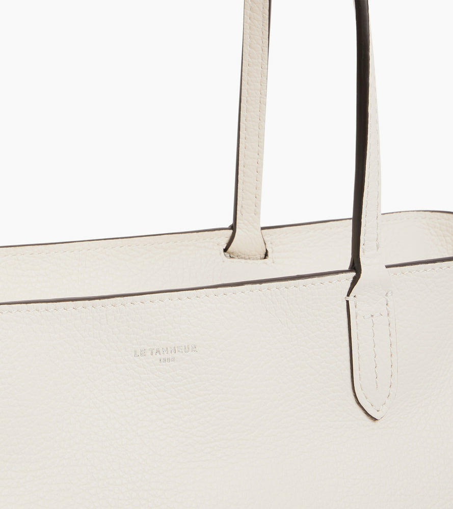 Grand sac cabas zippé en cuir grainé double face intérieur contrasté et pochette amovible. Porté épaule. Peut contenir un ordinateur 16".Cuir de vachette pleine fleur grainé double face. Doublure cuir de vachette.1 poche plate, 1 pochette zippée amovible.Accessoires métalliques finition argent.Largeur : 38 cm x Hauteur : 28 cm x Profondeur : 16 cm