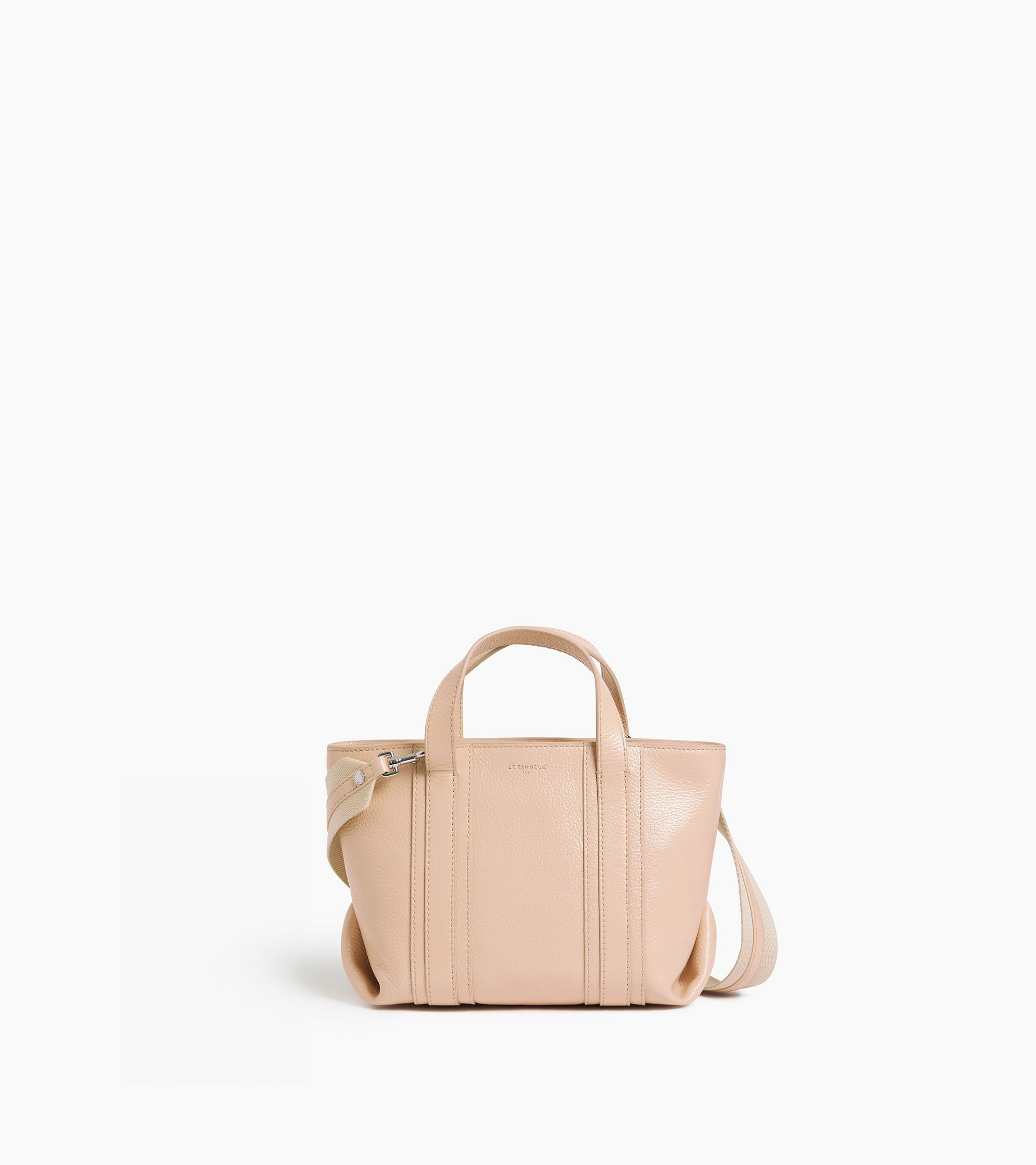 Mini sac cabas avec marquage Le Tanneur et poche zippée. Porté main, croisé ou épaule grâce à sa bandoulière ajustable et amovible.Cuir de vachette pleine fleur grainé. Doublure textile Le Bleu.1 poche plate et 1 poche zippée. Fermeture zippée. Bandoulière ajustable et amovible.Accessoires métalliques finition argent.Largeur : 21 cm x Hauteur : 17.5 cm x Profondeur : 11 cm