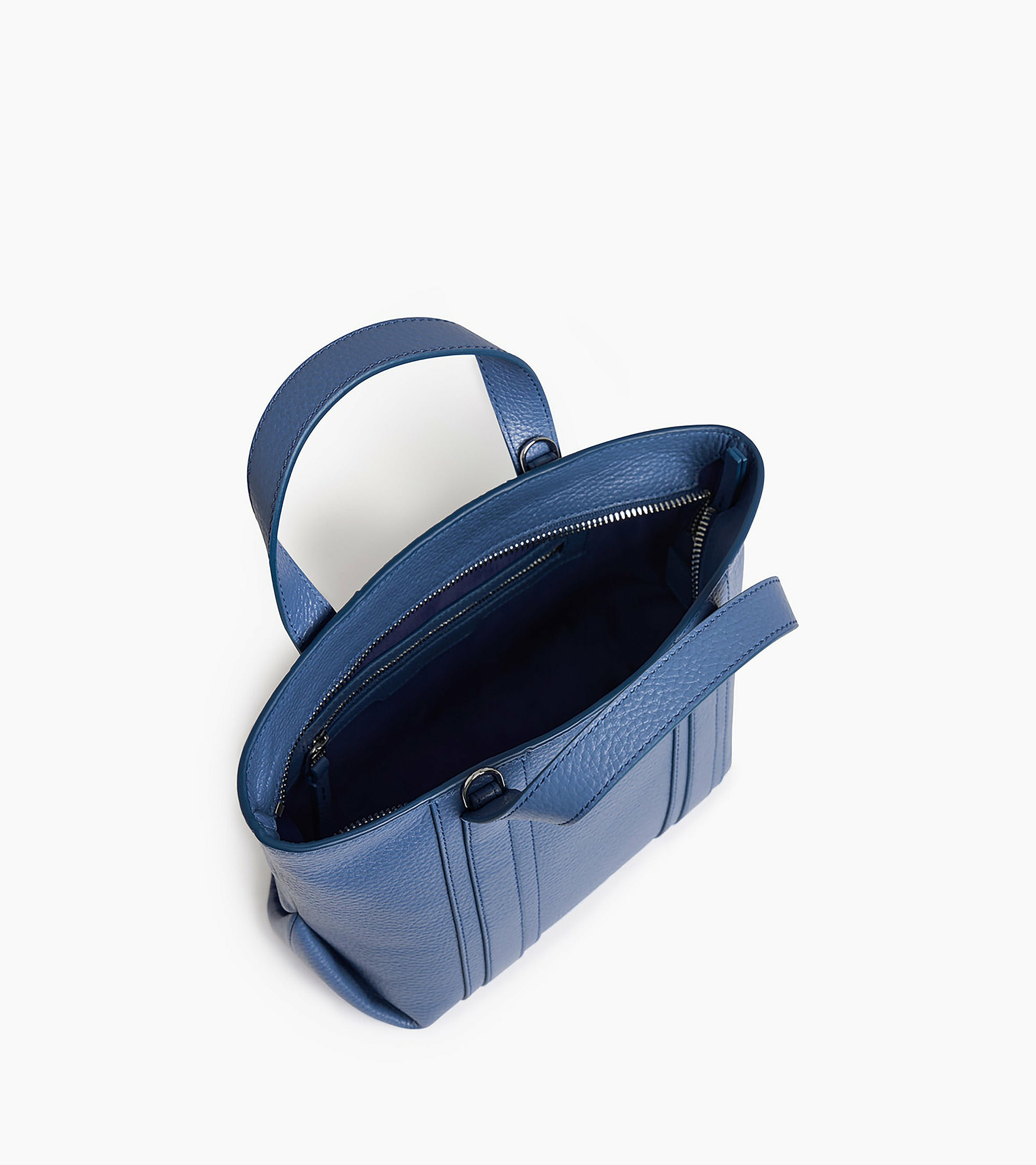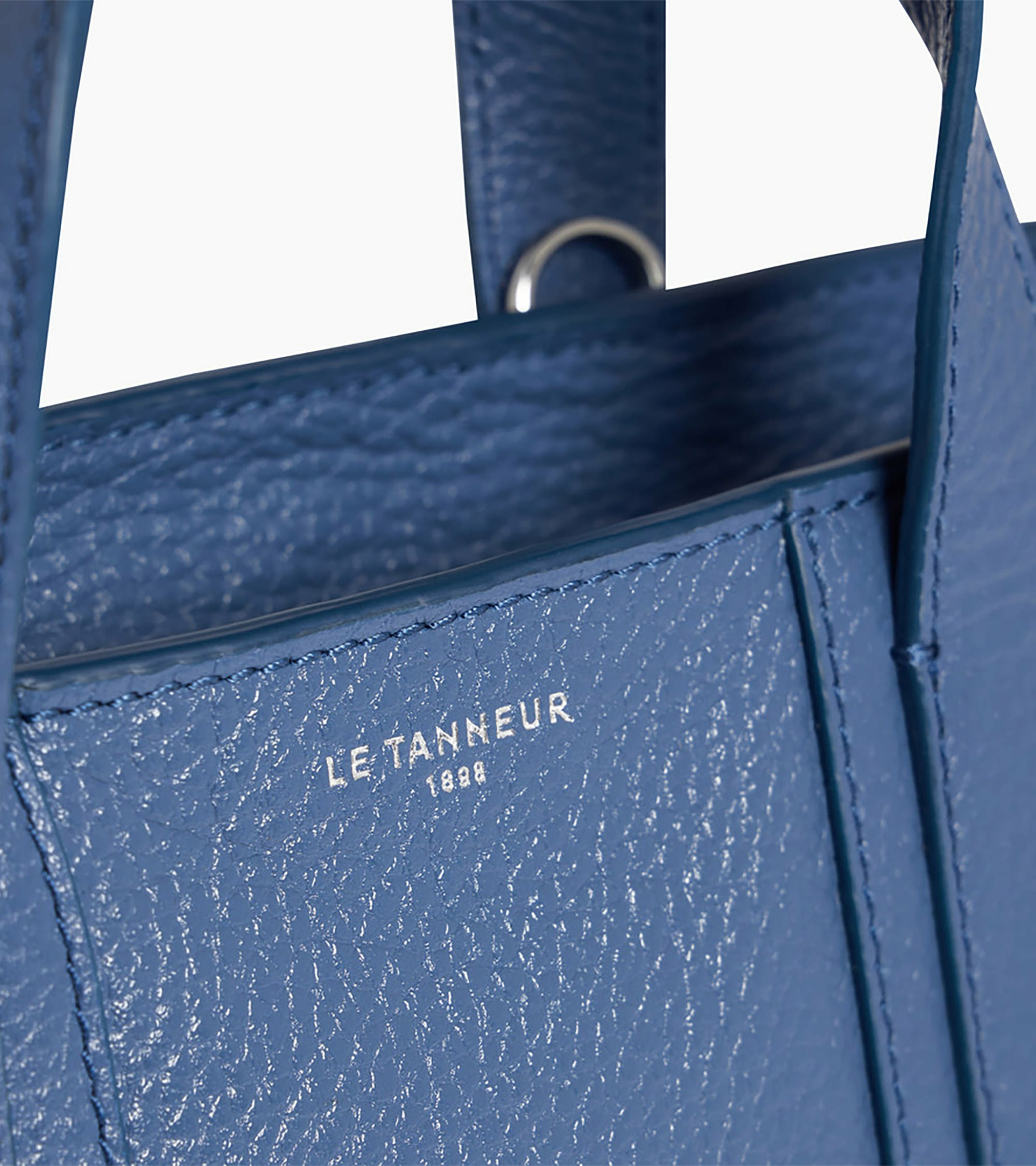 Mini sac cabas avec marquage Le Tanneur et poche zippée. Porté main, croisé ou épaule grâce à sa bandoulière ajustable et amovible.Cuir de vachette pleine fleur grainé. Doublure textile Le Bleu.1 poche plate et 1 poche zippée. Fermeture zippée. Bandoulière ajustable et amovible.Accessoires métalliques finition argent.Largeur : 21 cm x Hauteur : 17 cm x Profondeur : 11 cm