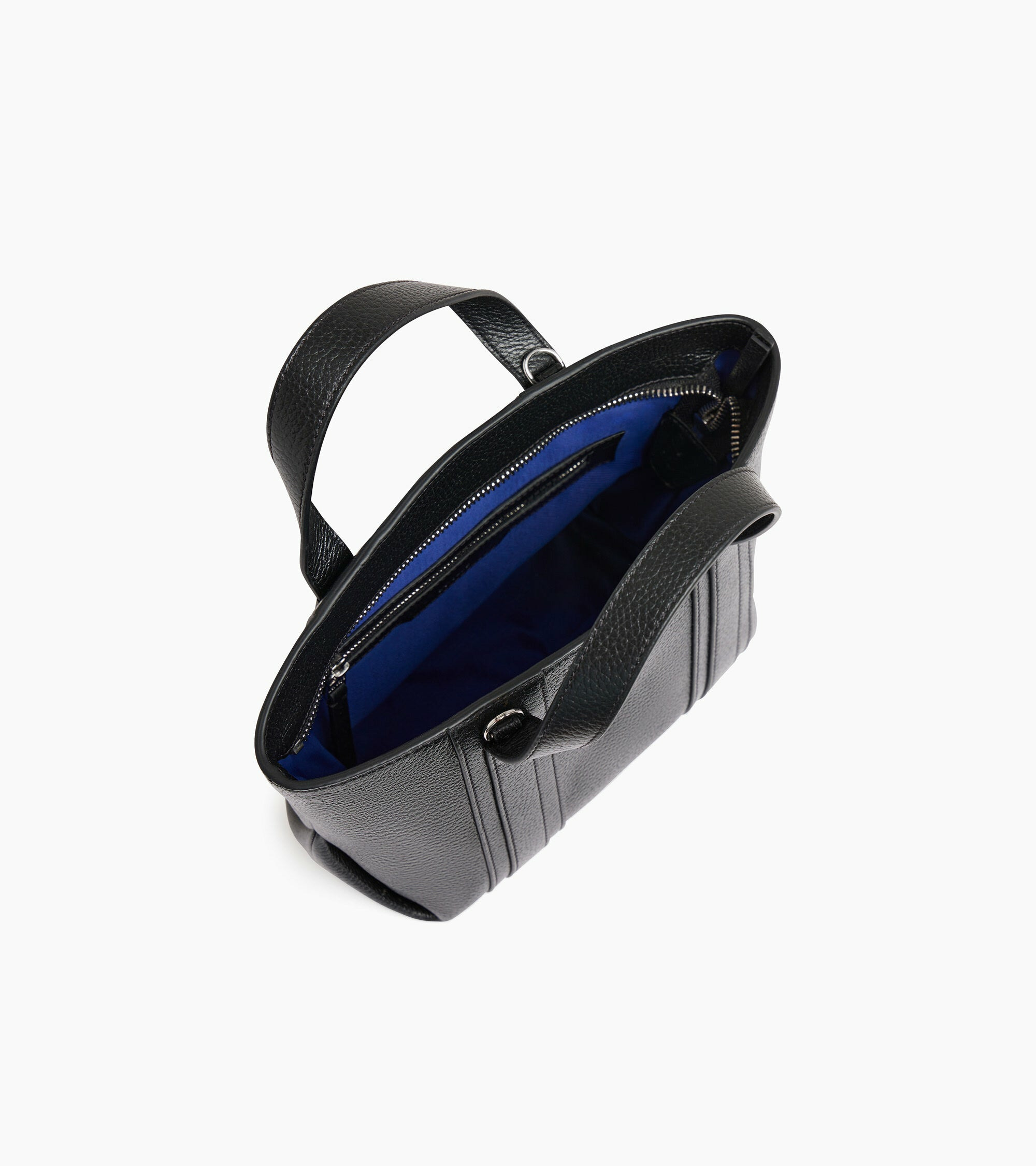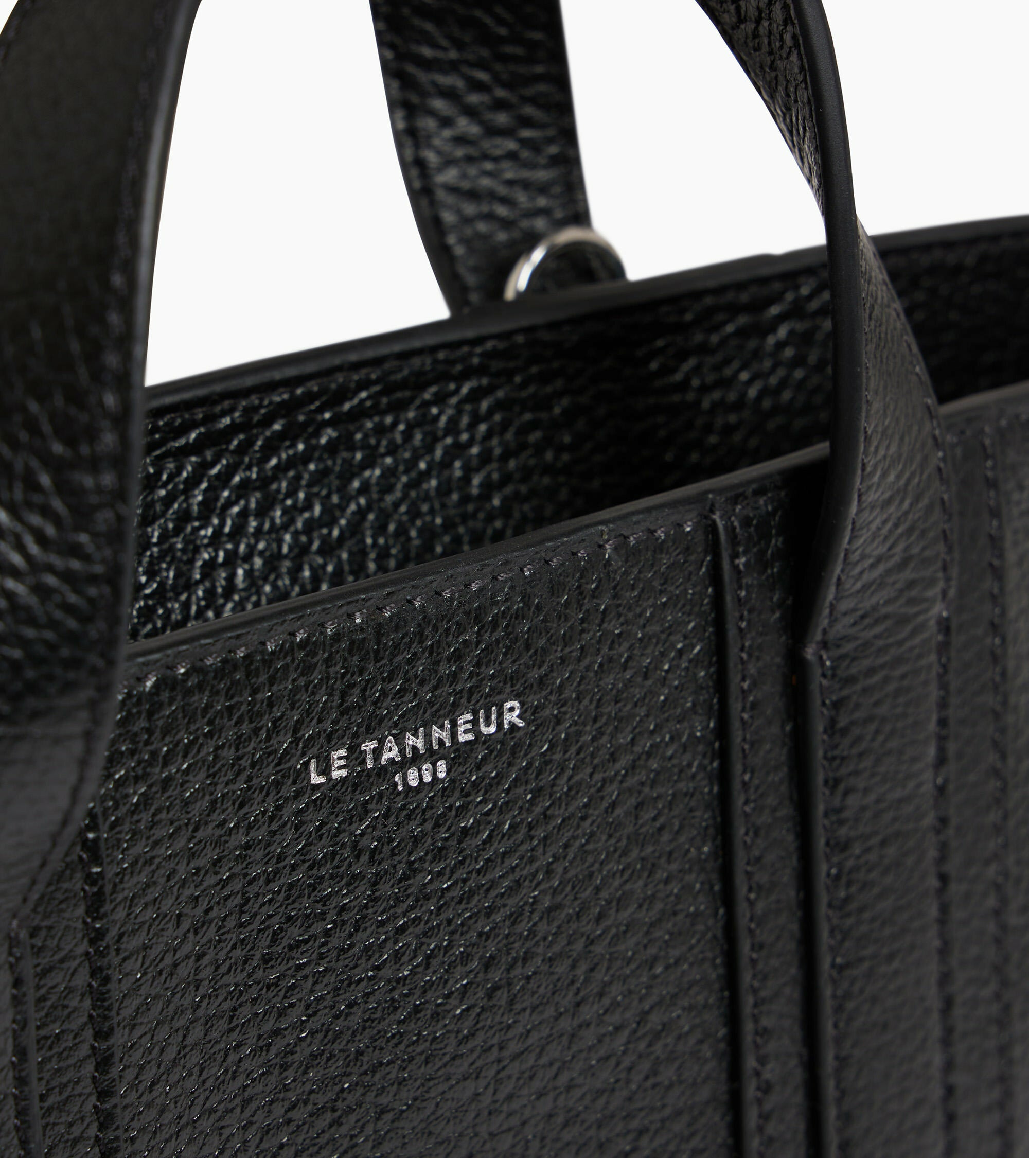 Mini sac cabas avec marquage Le Tanneur et poche zippée. Porté main, croisé ou épaule grâce à sa bandoulière ajustable et amovible.Cuir de vachette pleine fleur grainé. Doublure textile Le Bleu.1 poche plate et 1 poche zippée. Fermeture zippée. Bandoulière ajustable et amovible.Accessoires métalliques finition argent.Largeur : 21 cm x Hauteur : 17 cm x Profondeur : 11 cm