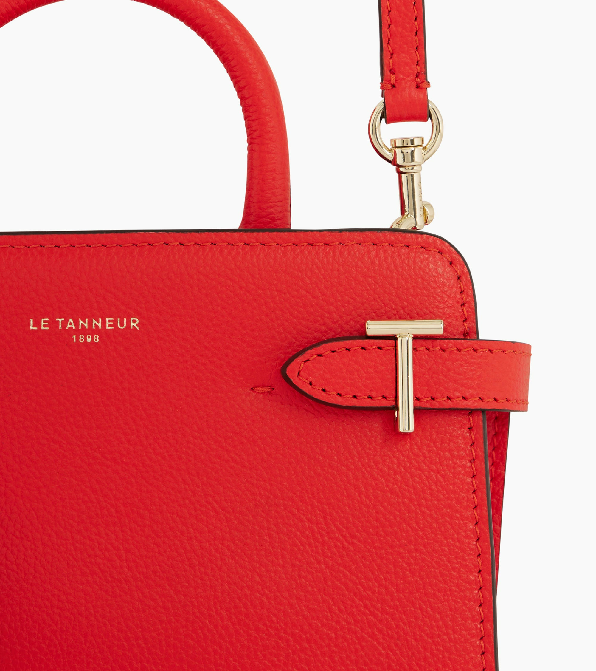 Sac à main petit modèle avec double T métallique signature et charms amovible. Marquage Le Tanneur sur film doré clair. Porté main, épaule ou croisé grâce à sa bandoulière ajustable et amovible.Cuir de vachette pleine fleur grainé. Doublure textile.1 poche plate. Bandoulière amovible et ajustable.Accessoires métalliques finition doré clair.Largeur : 19 cm x Hauteur : 14 cm x Profondeur : 6 cm