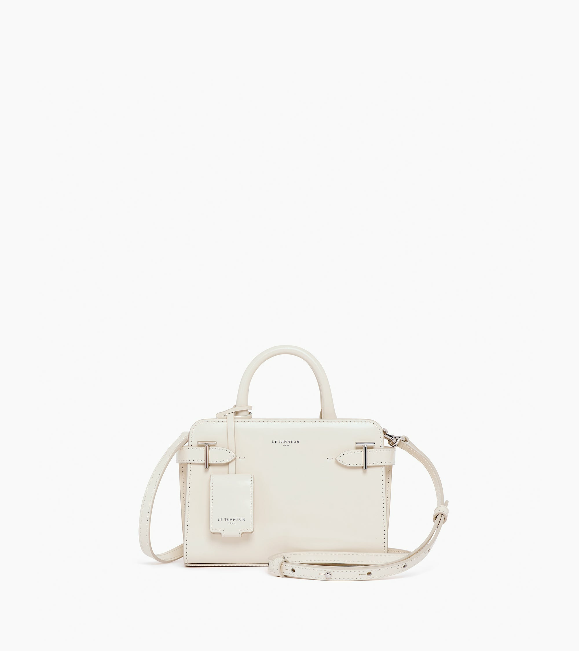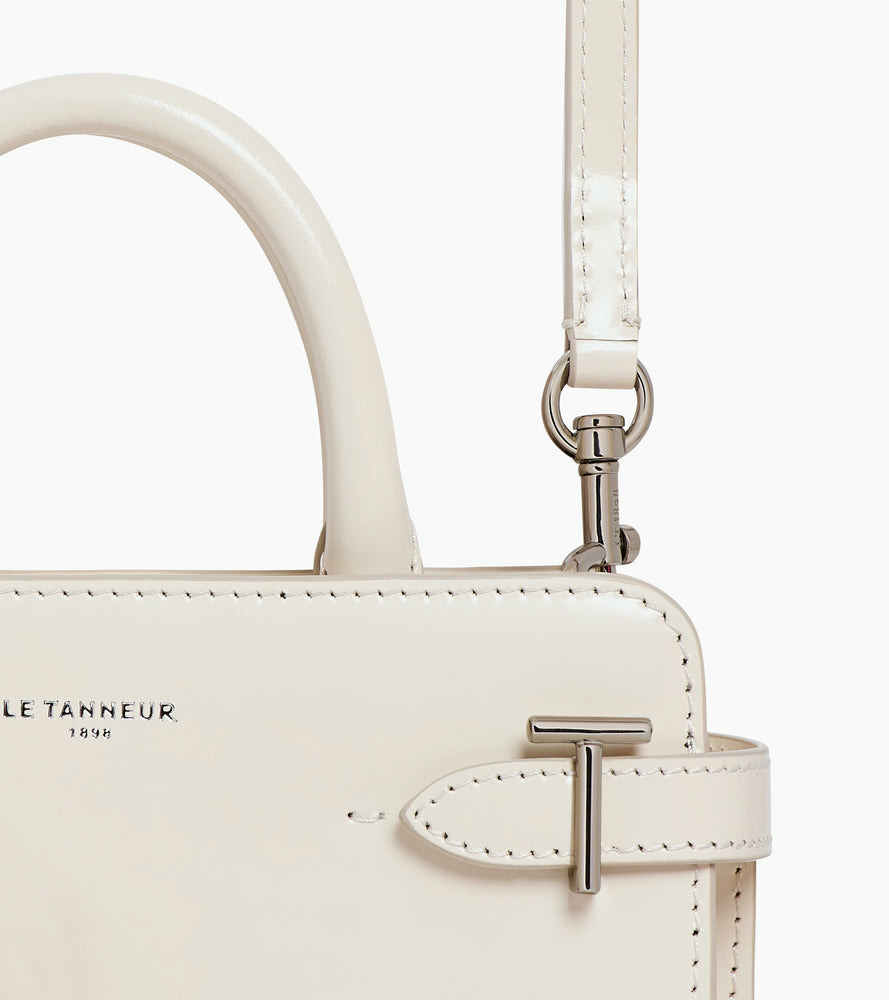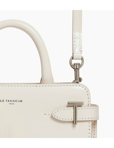 Sac à main mini modèle avec double T signature, charms amovible et doublure jacquard anniversaire. Marquage Le Tanneur et éléments métalliques finition argent. Porté main, épaule ou croisé grâce à sa bandoulière ajustable et amovible.Cuir corrigé de vachette effet box. Doublure textile jacquard anniversaire noir.1 poche plate. Bandoulière ajustable et amovibleAccessoires métalliques finition argent.Largeur : 19 cm x Hauteur : 14 cm x Profondeur : 6 cm