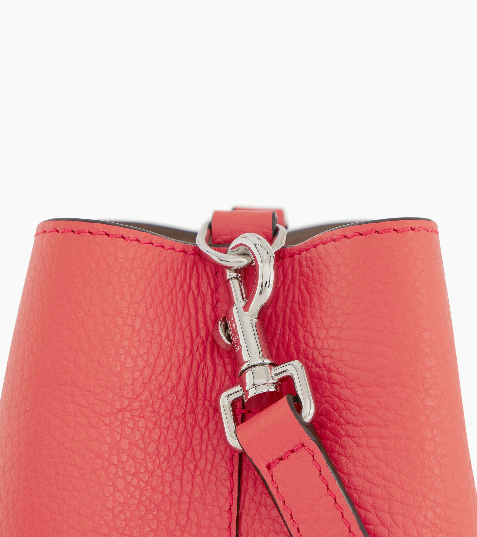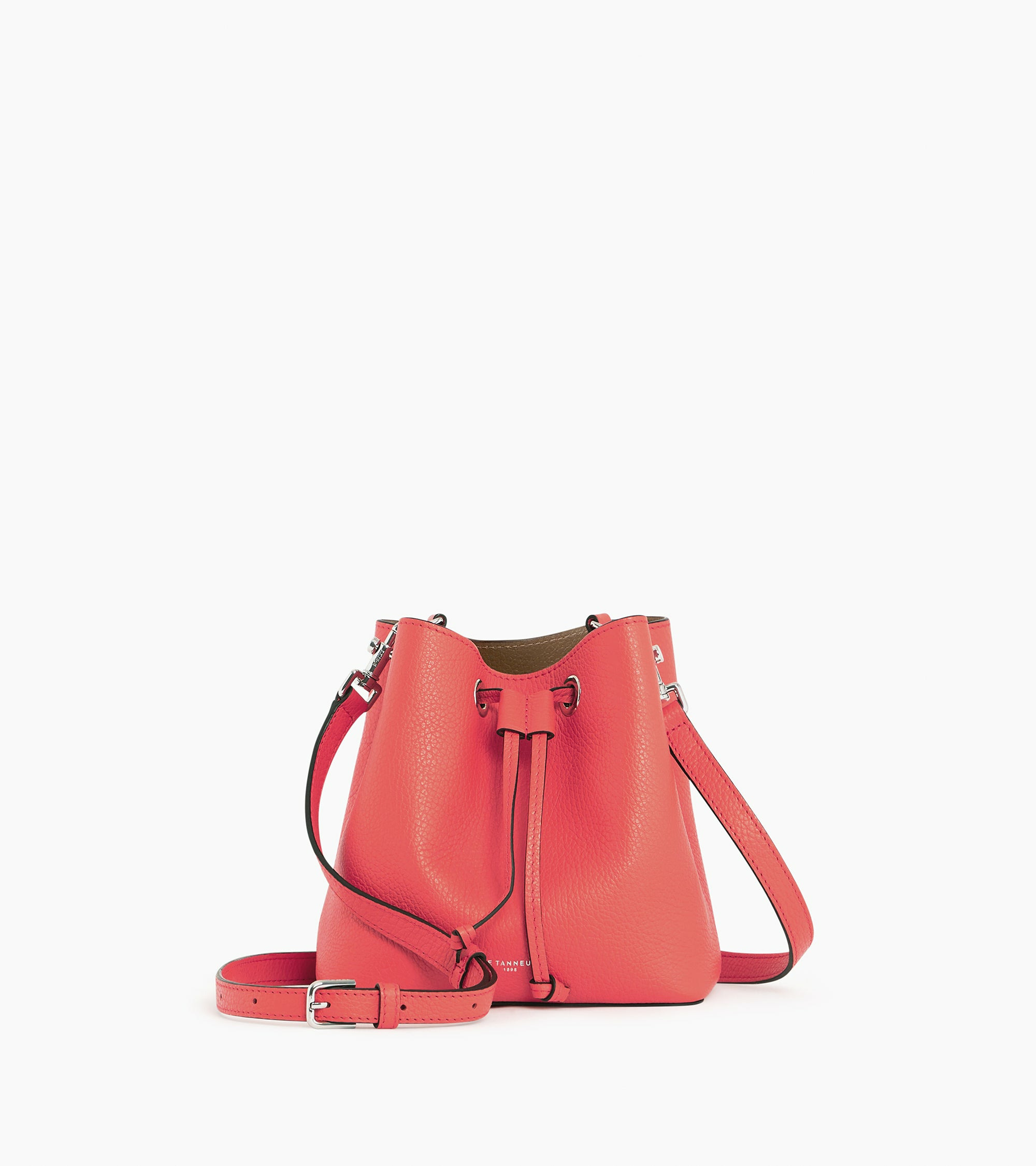 Mini sac seau en cuir bicolore avec pochette zippée détachable. Porté épaule ou croisé grâce à sa bandoulière ajustable et amovible.Cuir de vachette pleine fleur grainé double face. Doublure cuir de vachette.1 poche plate. 1 poche avant avec bouton aimanté. Bandoulière ajustableAccessoires métalliques finition argent.Largeur : 18 cm x Hauteur : 18 cm x Profondeur : 10 cm