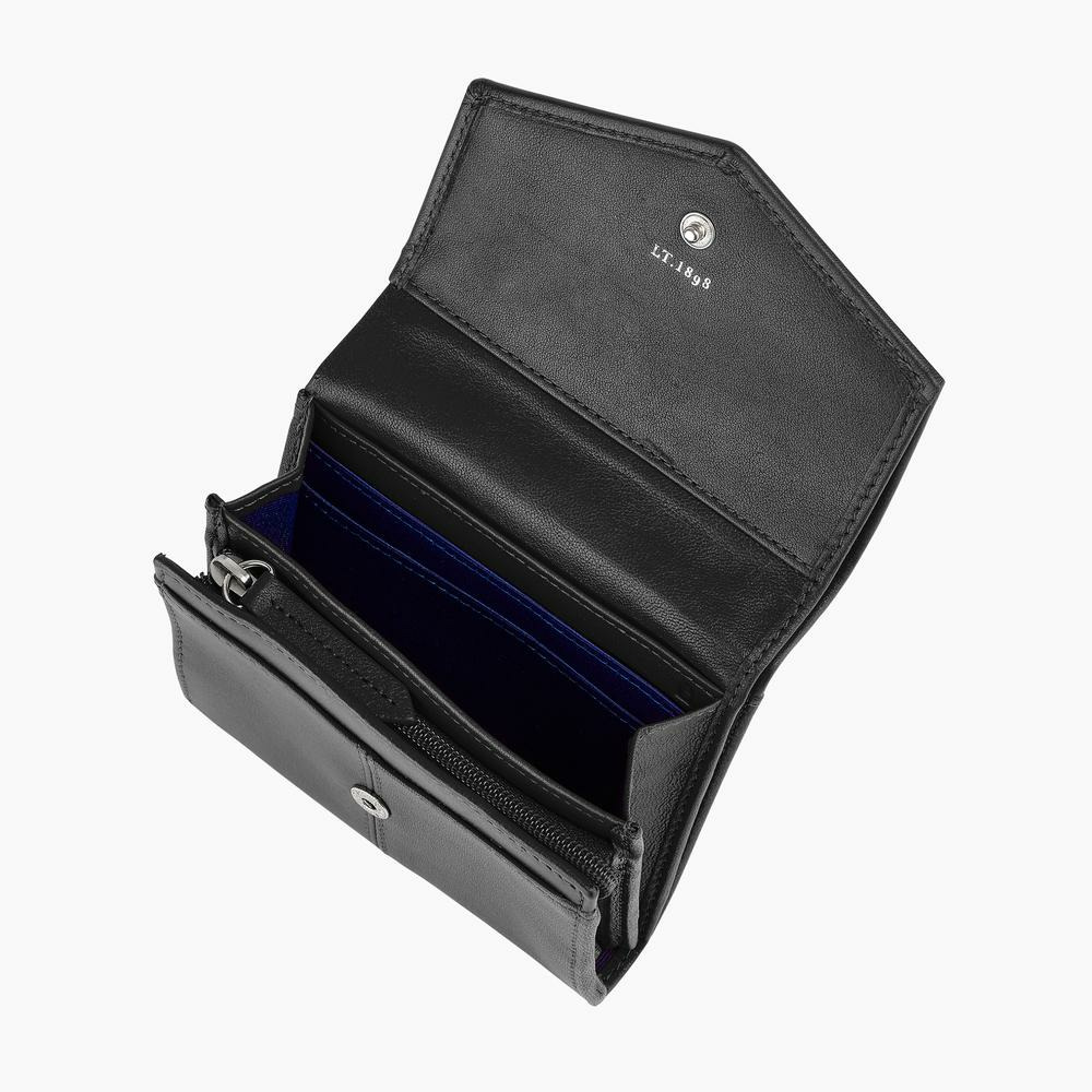 En plus de ses lignes saillantes, son cuir lisse et son intérieur à la fois graphique et moderne. Ce portefeuille comporte une doublure Le Bleu signature de la Maison.Cuir de vachette pleine fleur lisse. Doublure textile.2 poches plates, 1 soufflet, 1 poche zippée monnaie, 1 poche billets et 3 compartiments cartes, 1 poche plate arrière.Accessoires métalliques finition argent.Largeur : 11 cm x Hauteur : 9.5 cm