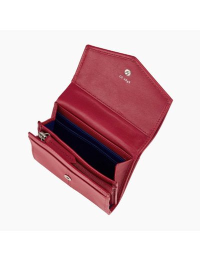 En plus de ses lignes saillantes, son cuir lisse et son intérieur à la fois graphique et moderne. Ce portefeuille comporte une doublure Le Bleu signature de la Maison.Cuir de vachette pleine fleur lisse. Doublure textile.2 poches plates, 1 soufflet, 1 poche zippée monnaie, 1 poche billets et 3 compartiments cartes, 1 poche plate arrière.Accessoires métalliques finition argent.Largeur : 11 cm x Hauteur : 9.5 cm