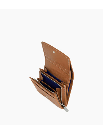 Petit portefeuille à rabat avec poche zippée. Marquage Le Tanneur et fermeture pression finition argent. Sécurité anti-RFID.Cuir de vachette pleine fleur grainé. Doublure textile Le Bleu.1 poche plate, 1 poche zippée monnaie, 2 soufflets, 1 soufflet. 4 compartiments cartes, 1 poche billet.Accessoires métalliques finition argent.Largeur : 14 cm x Hauteur : 10 cm