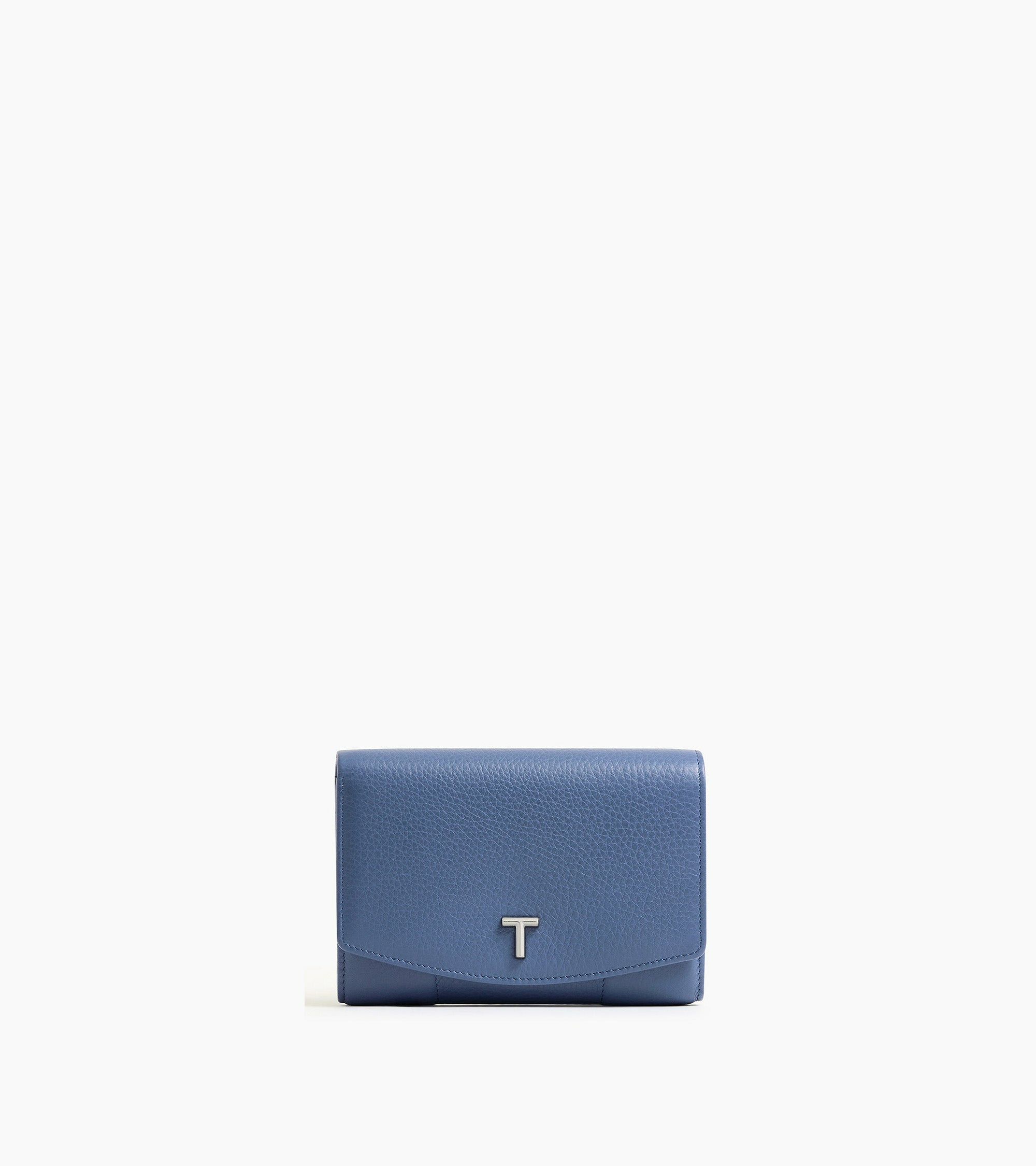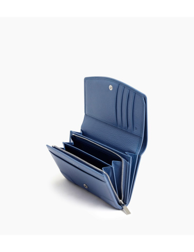 Petit portefeuille à rabat avec poche zippée. Marquage Le Tanneur et fermeture pression finition argent. Sécurité anti-RFID.Cuir de vachette pleine fleur grainé. Doublure textile Le Bleu.1 poche plate, 1 poche zippée monnaie, 2 soufflets, 1 soufflet. 4 compartiments cartes, 1 poche billet.Accessoires métalliques finition argent.Largeur : 14 cm x Hauteur : 10 cm