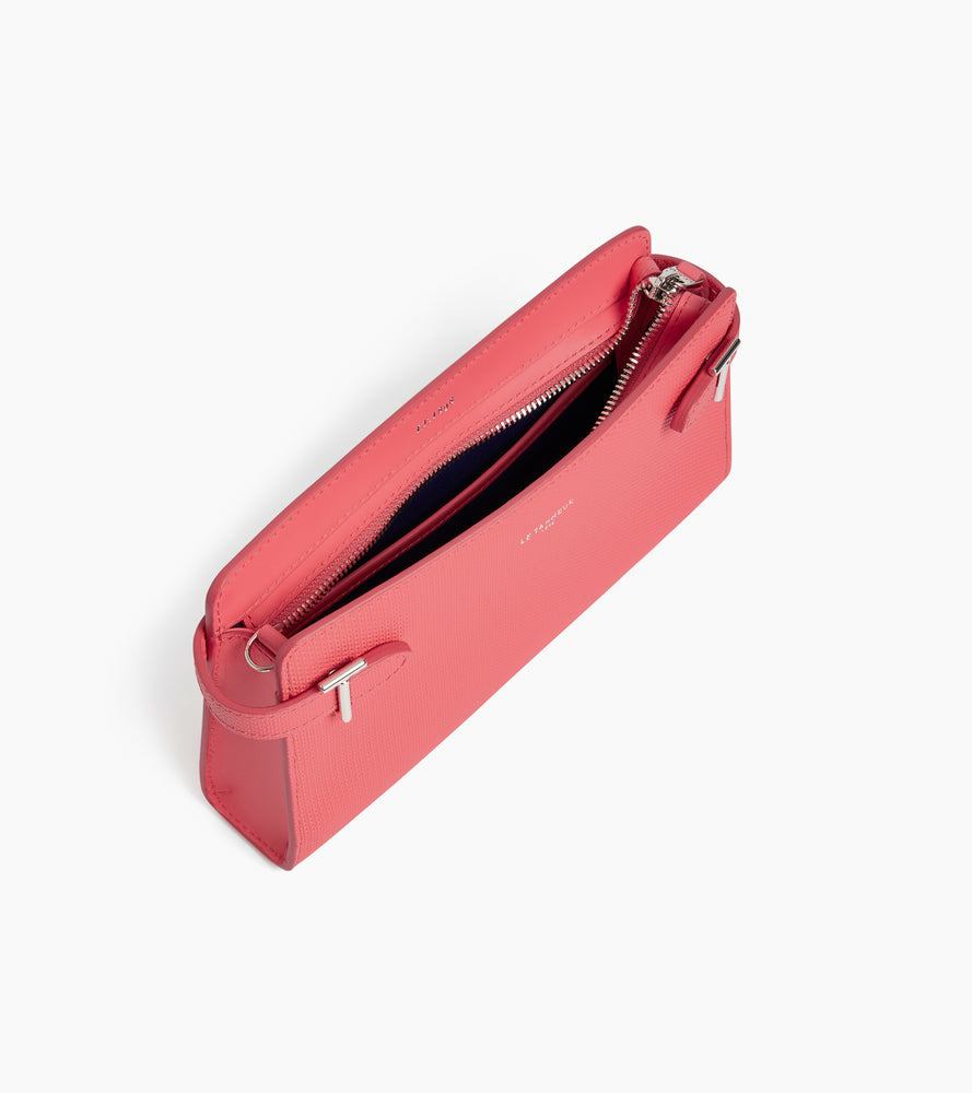 Petit sac à bandoulière avec fermoirs T signature et marquage Le Tanneur. Porté main, épaule ou croisé grâce à sa bandoulière ajustable et amovible.Cuir de vachette grain t pleine fleur. Doublure textile Le Bleu.1 poche plate. 1 poche plate arrière. Bandoulière ajustable et amovible.Accessoires métalliques finition argent.Largeur : 23.5 cm x Hauteur : 13.5 cm x Profondeur : 4 cm