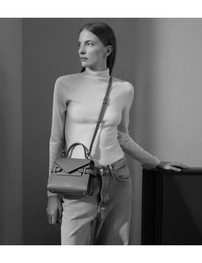 Dimensions : petit format idéal pour l’essentiel. Matière : cuir grainé pleine fleur. Fermeture : double rabat avec bouton pression. Bandoulière ajustable et amovible pour un porté main ou épaule.