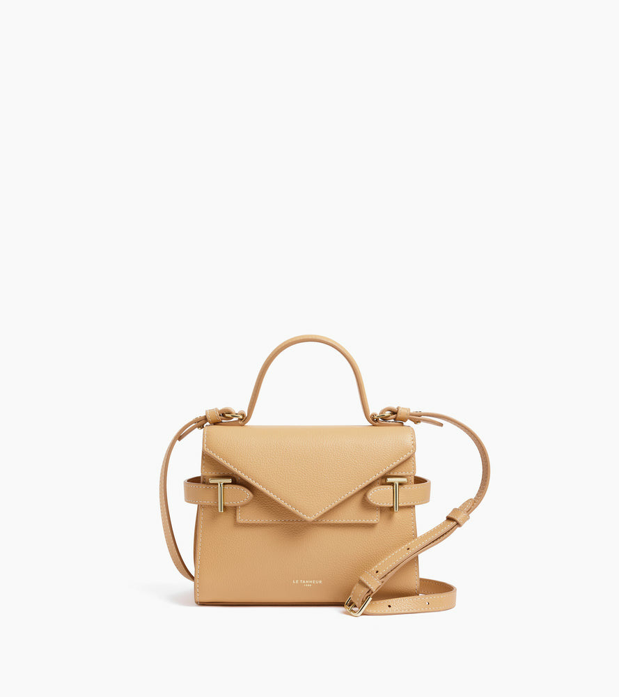 Petit sac à main avec double rabat, bijouterie T signature et marquage Le Tanneur. Porté main, épaule ou croisé grâce à sa bandoulière ajustable et amovible.Cuir de vachette pleine fleur grainé. Doublure textile Le Bleu.1 poche plate. 1 poche plate arrière dos. 1 poche plate avant. Bandoulière ajustable et amovible.Accessoires métalliques finition doré clair.Largeur : 20 cm x Hauteur : 17 cm x Profondeur : 8.5 cm