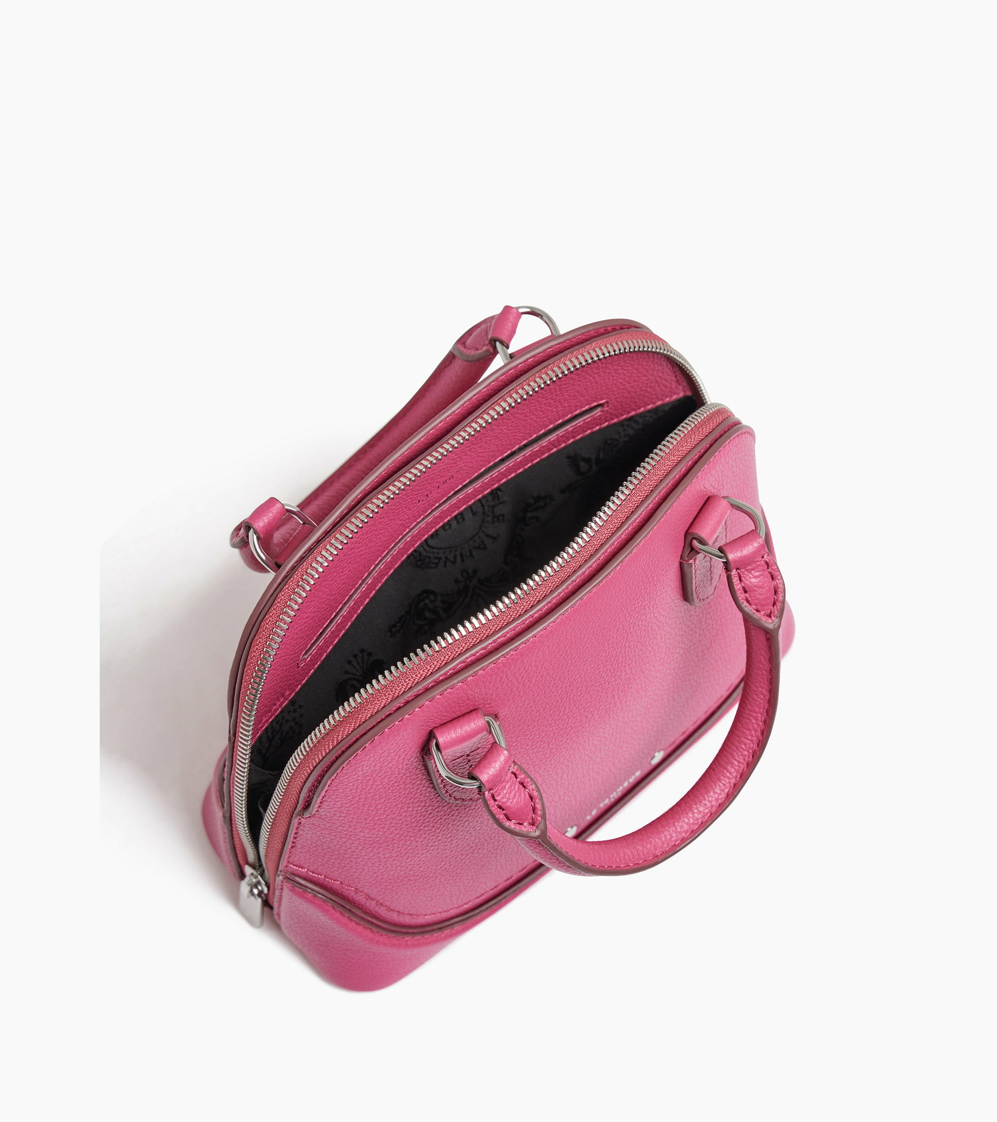 Petit sac à main marqué Le Tanneur, avec renfort de cuir et grande poche zippée. Intérieur jacquard anniversaire 125 ans. Porté main, épaule ou croisé grâce à sa bandoulière ajustable et amovible.Cuir de vachette pleine fleur grainé. Doublure textile jacquard noir.1 poche plate, 1 poche zippée et 1 poche plate. Mousqueton clés. 1 poche plate arrière. Poignée amovible. Bandoulière ajustable et amovible.Accessoires métalliques finition argent.Largeur : 27 cm x Hauteur : 22 cm x Profondeur : 9 cm