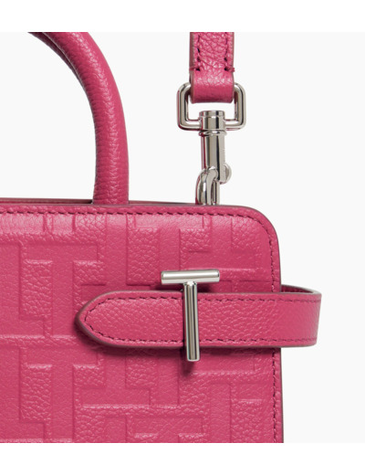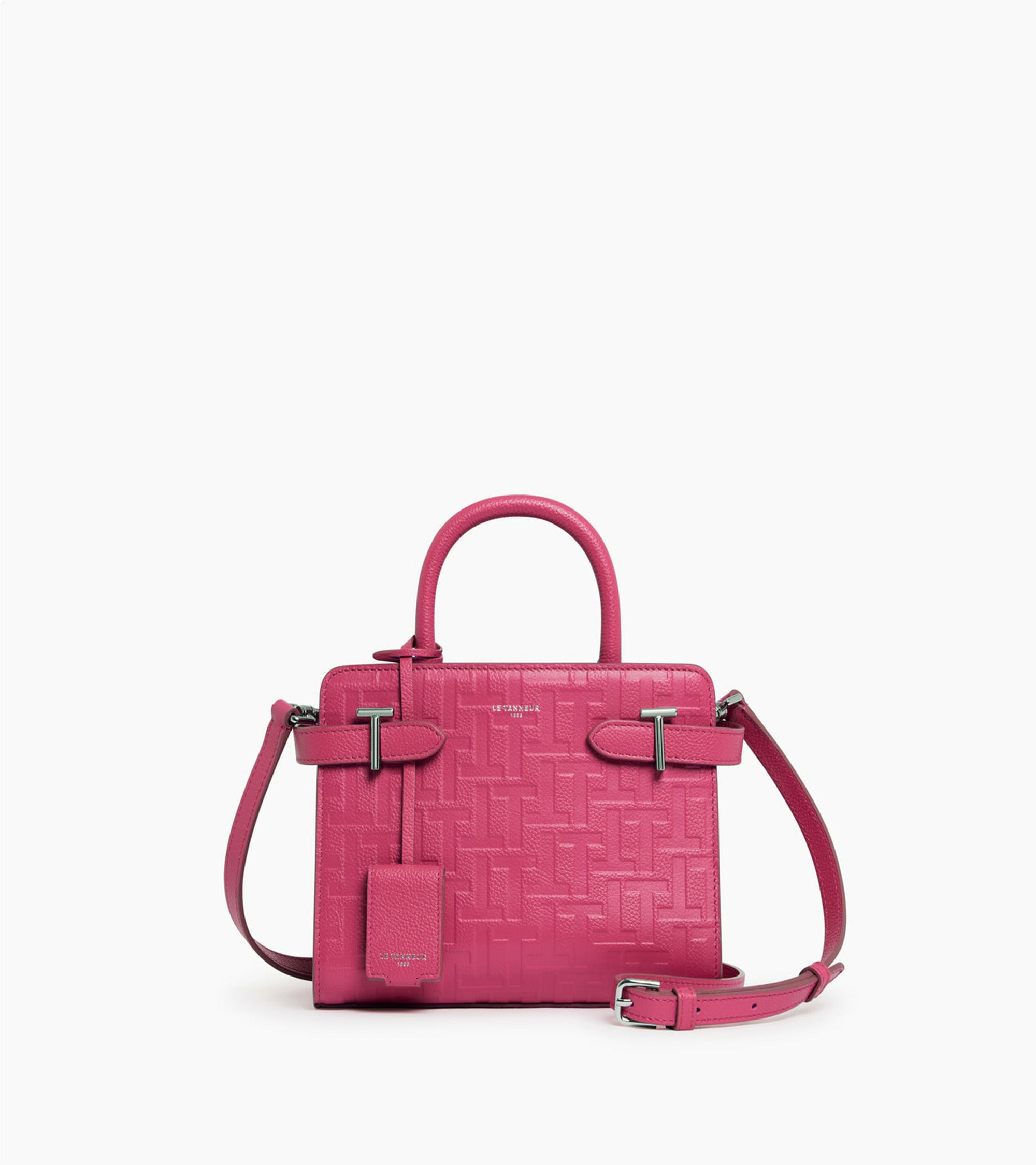 Petit sac à main avec charms et fermoirs T signature finition argent. Porté main, épaule ou croisé grâce à sa bandoulière ajustable et amovible.Cuir de vachette pleine fleur grainé embossé T. Doublure textile Le Bleu.2 poches plates et 1 poche zippée. Bandoulière ajustable et amovible.Accessoires métalliques finition argent.Largeur : 22 cm x Hauteur : 17 cm x Profondeur : 10 cm