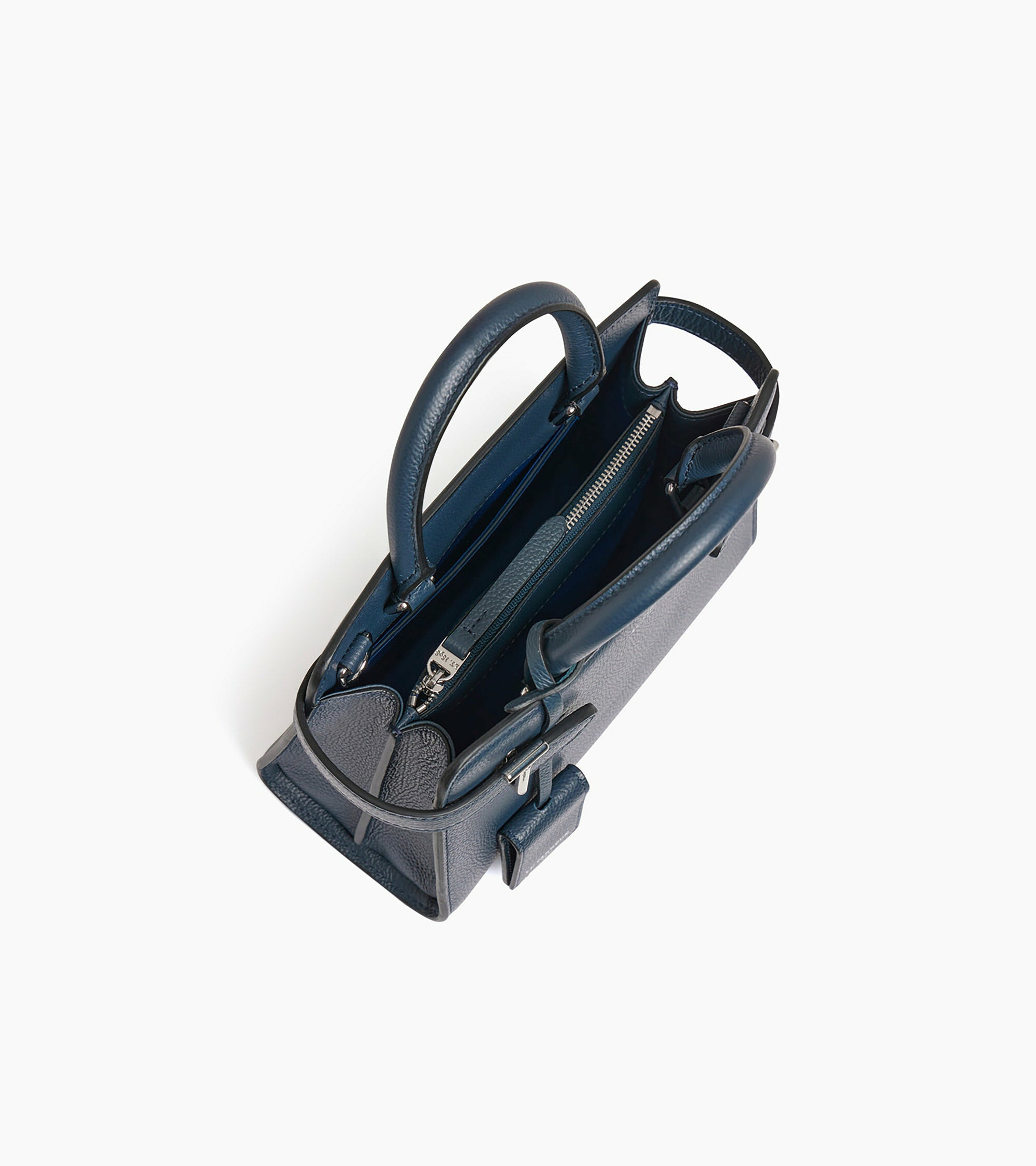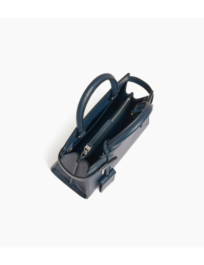 Petit sac à main avec poignées toron et trois compartiments dont un zippé. Pièces T métalliques signature de la ligne. Charms embossé Le Tanneur amovible. Porté main, épaule ou croisé grâce à sa bandoulière ajustable et amovible.Cuir de vachette pleine fleur grainé. Doublure textile Le Bleu.2 poches plates et 1 poche zippée. Bandoulière ajustable et amovible.Accessoires métalliques finition argent.Largeur : 22 cm x Hauteur : 17 cm x Profondeur : 10 cm