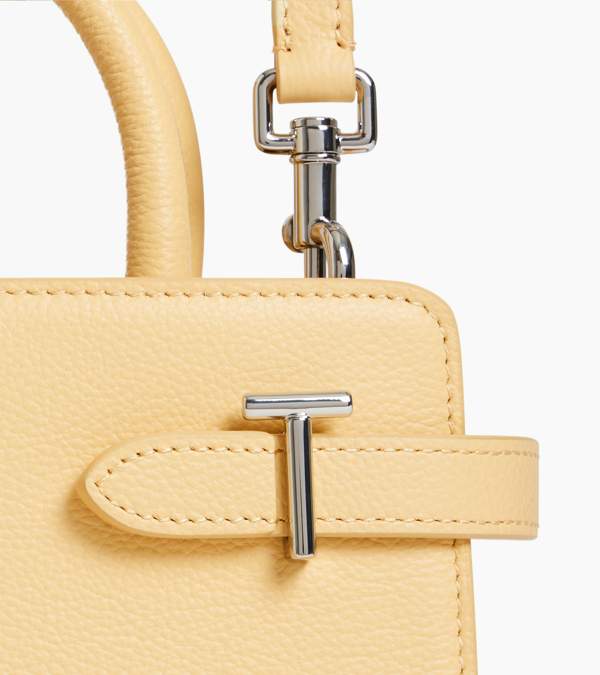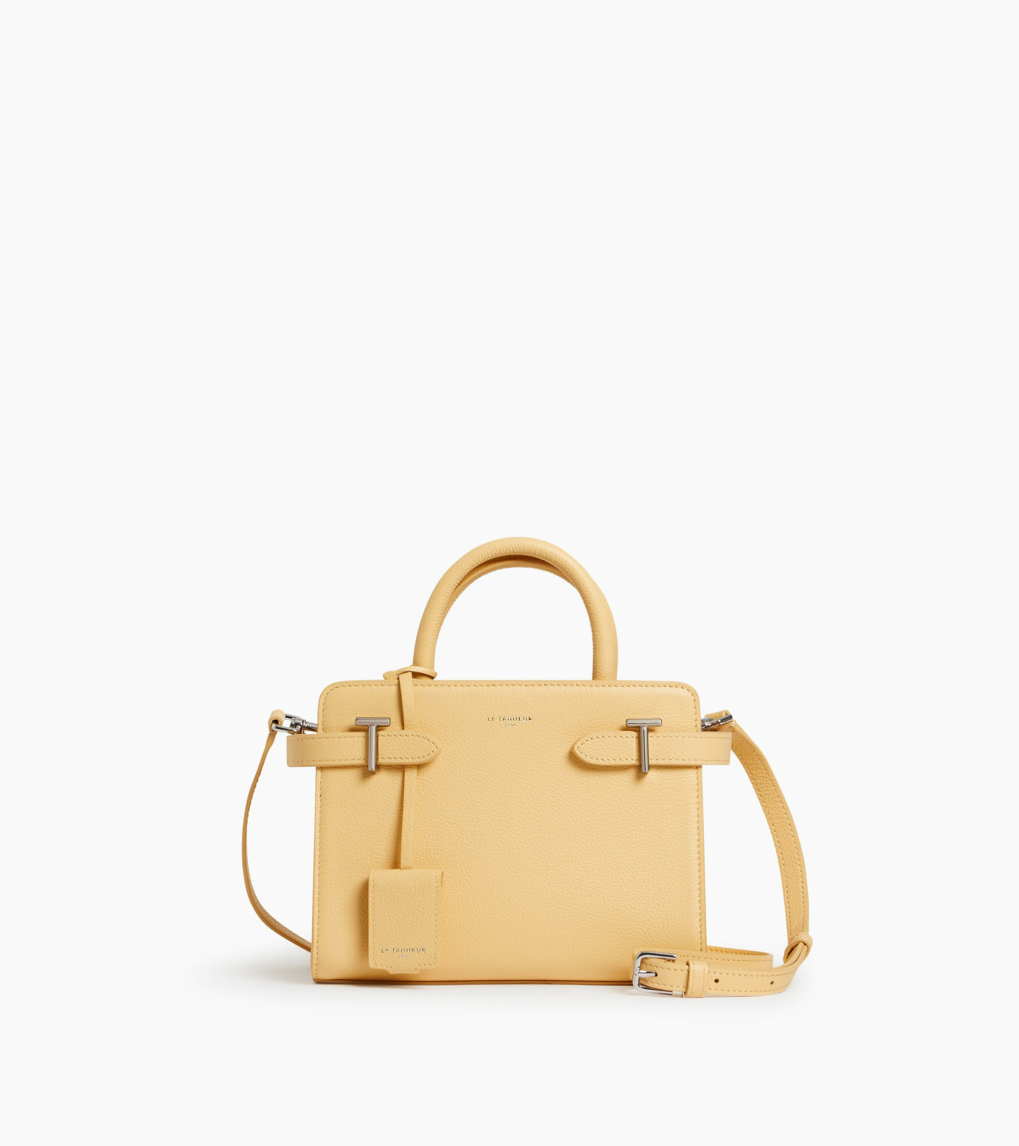 Petit sac à main avec poignées toron et trois compartiments dont un zippé. Pièces T métalliques signature de la ligne. Charms embossé Le Tanneur amovible. Porté main, épaule ou croisé grâce à sa bandoulière ajustable et amovible.Cuir de vachette pleine fleur grainé. Doublure polyester Le Bleu.2 poches plates et 1 poche zippée. Bandoulière ajustable et amovible.Accessoires métalliques finition doré clair.Largeur : 22 cm x Hauteur : 17 cm x Profondeur : 10 cm