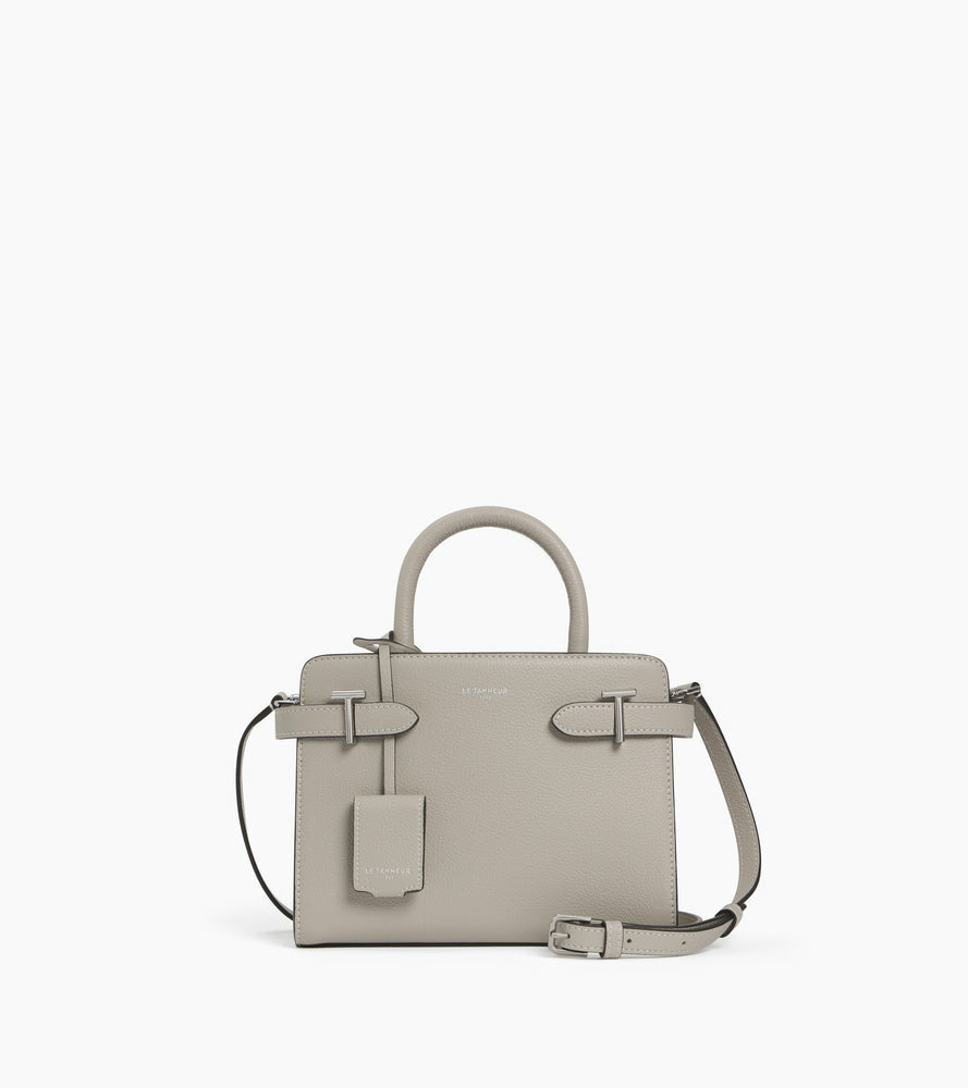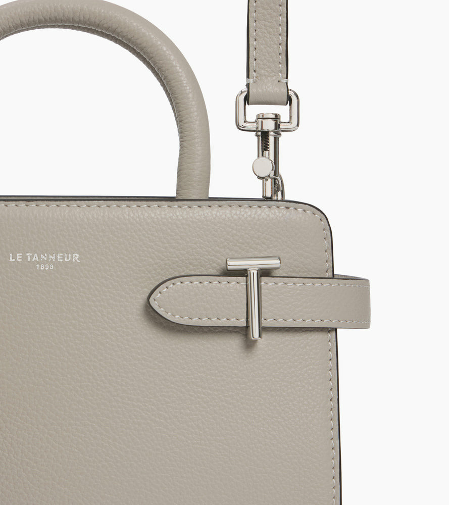 Petit sac à main avec poignées toron et trois compartiments dont un zippé. Pièces T métalliques signature de la ligne. Charms embossé Le Tanneur amovible. Porté main, épaule ou croisé grâce à sa bandoulière ajustable et amovible.Cuir de vachette pleine fleur grainé. Doublure textile Le Bleu.2 poches plates et 1 poche zippée. Bandoulière ajustable et amovible.Accessoires métalliques finition argent.Largeur : 22 cm x Hauteur : 17 cm x Profondeur : 10 cm