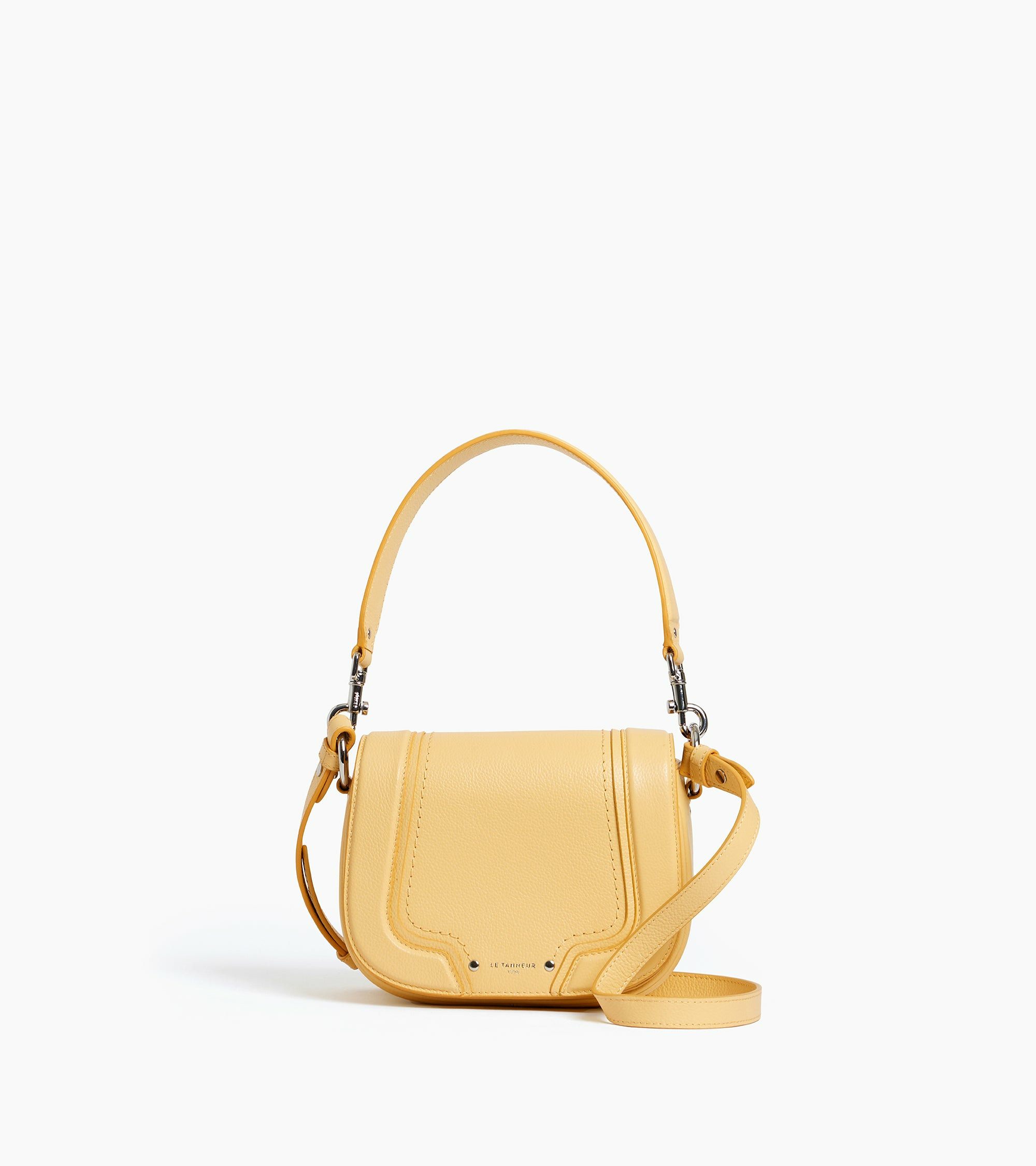 Besace petit modèle avec marquage Le Tanneur et intérieur jacquard anniversaire 125 ans. Porté main, croisé ou épaule grâce à sa bandoulière ajustable et sa poignée amovible ajustée au corps du sac.Cuir de vachette grainé pleine fleur. Doublure microfibre.1 poche plate, 1 poche zippée et 1 poche plate. Mousqueton clés. 1 poche plate arrière. Poignée amovible. Bandoulière ajustable et amovible.Accessoires métalliques finition argent.Largeur : 19 cm x Hauteur : 15 cm x Profondeur : 7.5 cm