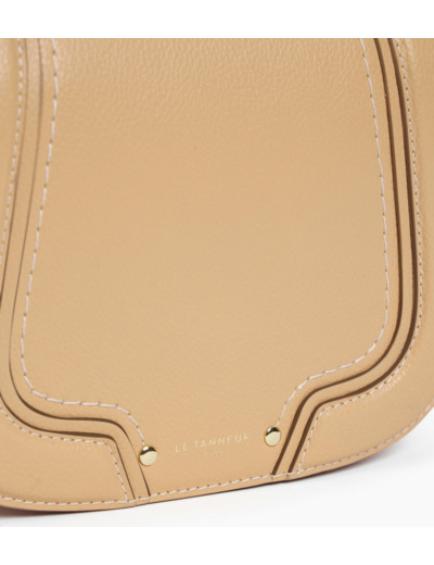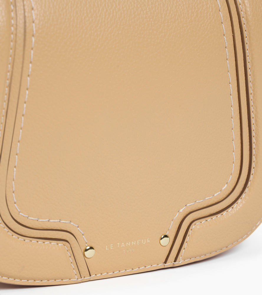 Besace petit modèle avec marquage Le Tanneur et intérieur jacquard anniversaire 125 ans. Porté main, croisé ou épaule grâce à sa bandoulière ajustable et sa poignée amovible ajustée au corps du sac.Cuir de vachette grainé pleine fleur. Doublure textile jacquard anniversaire noir.1 poche plate, 1 poche zippée et 1 poche plate. Mousqueton clés. 1 poche plate arrière. Poignée amovible. Bandoulière ajustable et amovible.Accessoires métalliques finition doré clair.Largeur : 19 cm x Hauteur : 15 cm x Profondeur : 7.5 cm