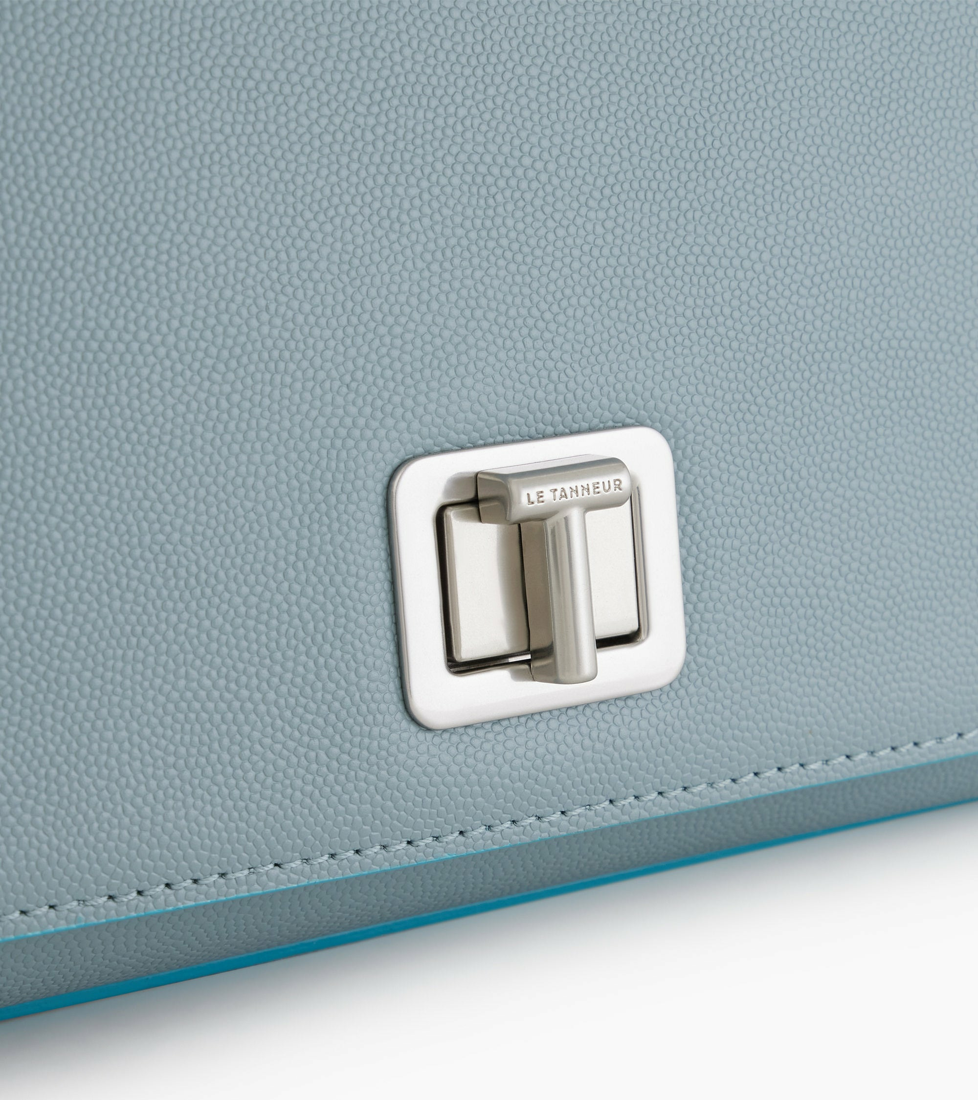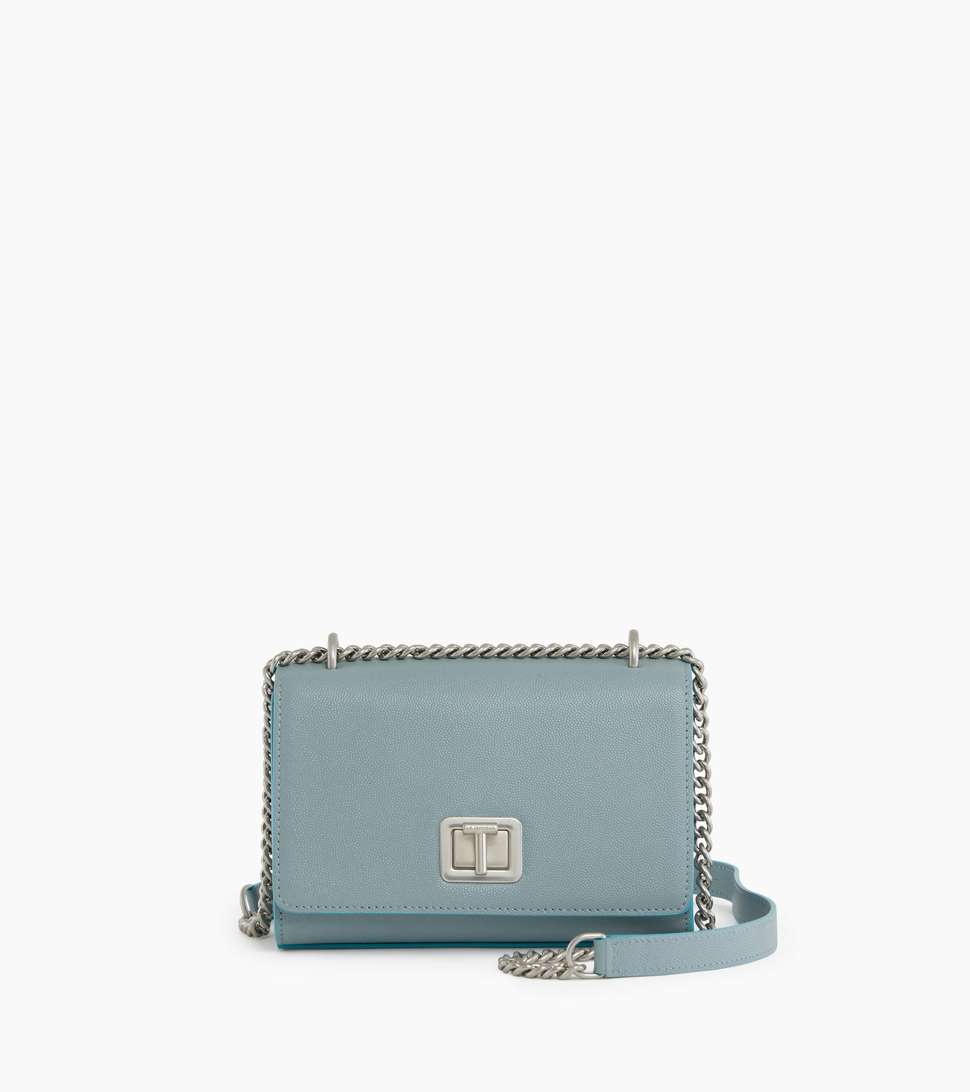 Petit sac bandoulière chaîne avec fermoir T signature. Porté croisé ou épaule grâce à sa bandoulière ajustable.Cuir de vachette pleine fleur grain caviar. Doublure textile Le Bleu.1 poche plate, 1 poche zippée et 1 mousqueton clé. 1 poche plate arrière. Bandoulière ajustable.Accessoires métalliques finition argent vieilli.Largeur : 20 cm x Hauteur : 14 cm x Profondeur : 8 cm