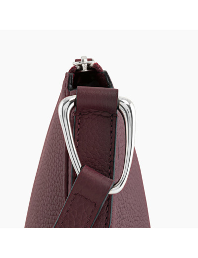 Petit sac à bandoulière en cuir grainé. Fermeture zippée. Bandoulière ajustable avec bouton de col et pièce métallique asymétrique finition palladium. Se porte croisé ou à l'épaule. Edition limitée numérotée et livrée dans un coffret de protection avec pochon.Cuir de Taurillon grainé pleine fleur fabrication française. Doublure tissu.1 poche zippée intérieur. Fermeture zippée Bandoulière ajustable.Accessoires métallique Nickel Brillant finition PalladiumLargeur : 26 cm x Hauteur : 19 cm x Profondeur : 6 cm