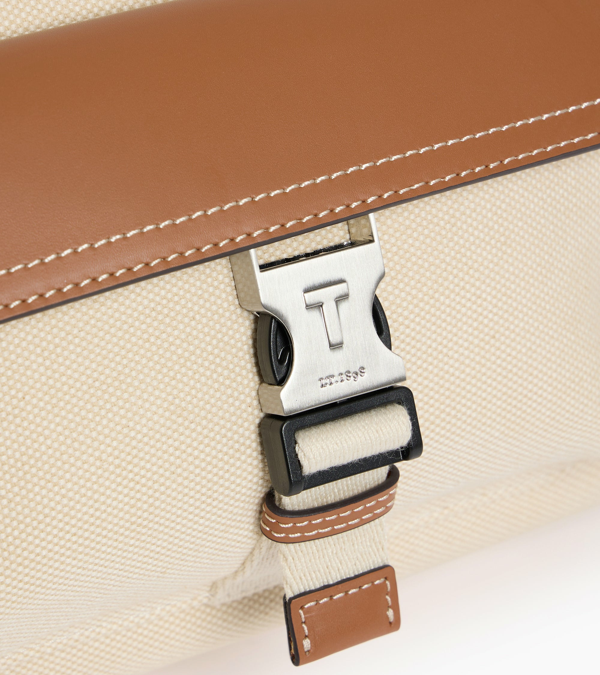 Petit sac bandoulière bi-matière avec fermoir T signature finition argent brossé et marquage Le Tanneur ton sur ton. Porté épaule ou croisé grâce à sa bandoulière ajustable.Cuir de vachette 100% coton et pleine fleur. Toile naturelle coton & cuir lisse tannage semi végétal. Doublure textile Le Bleu.1 poche plate et 1 poche zippée. 1 poche rabat avant. 1 poche zippée arrière. Bandoulière ajustable.Accessoires métalliques finition argent brossé.Largeur : 24 cm x Hauteur : 18 cm x Profondeur : 10 cm